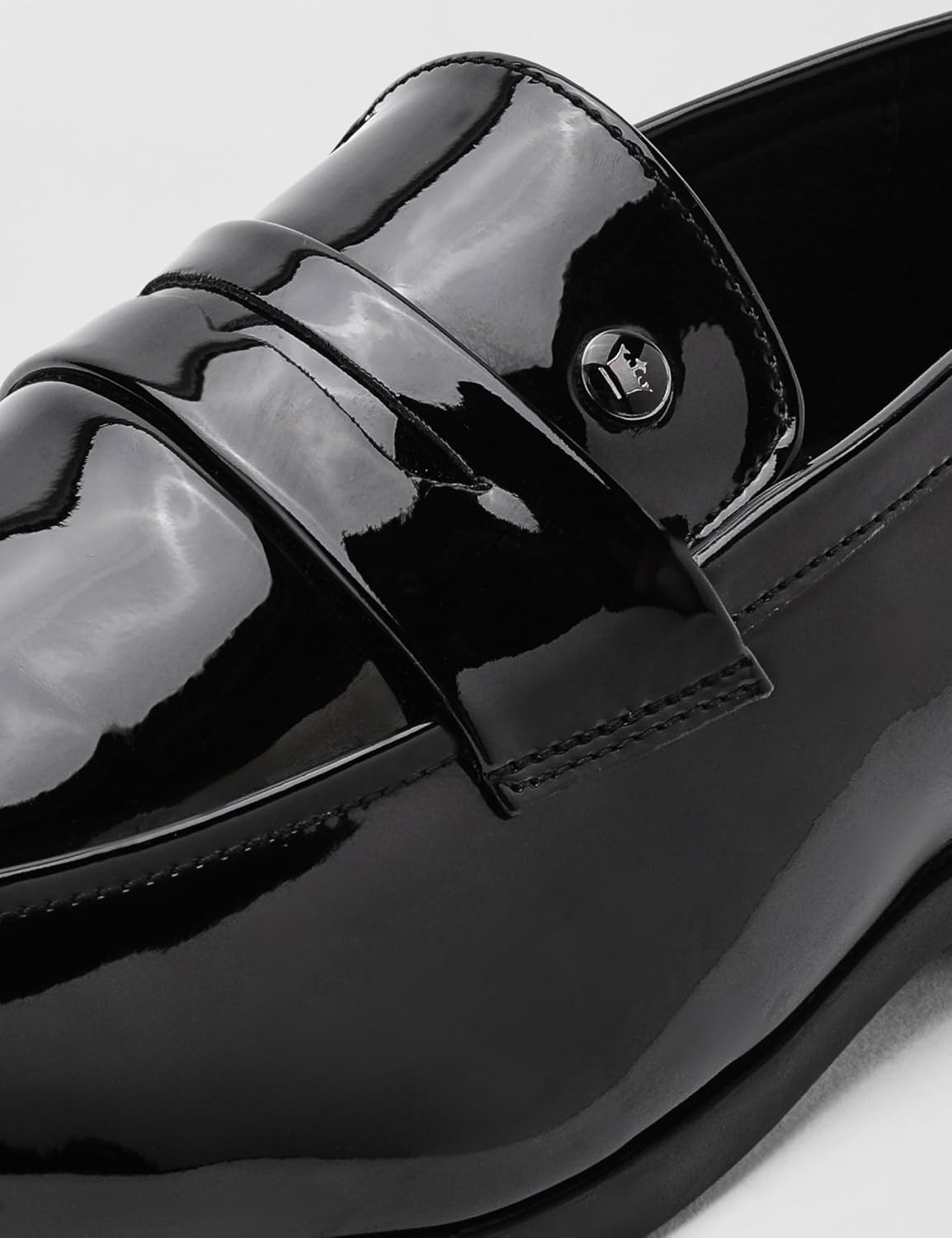 Louis Philippe Men Patent Leather Breathable Lining Material Anti Slip with Heel TPR Sole Formal Slip-on Shoes