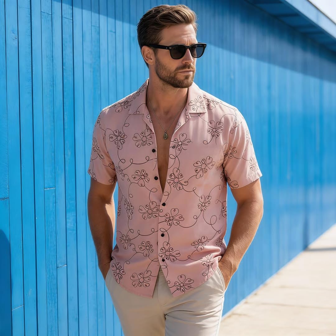 Lymio Men Shirt || Men Embroidery Design Half Sleeve Cotton Shirt (Available Also Packs) (Embro-Flower)