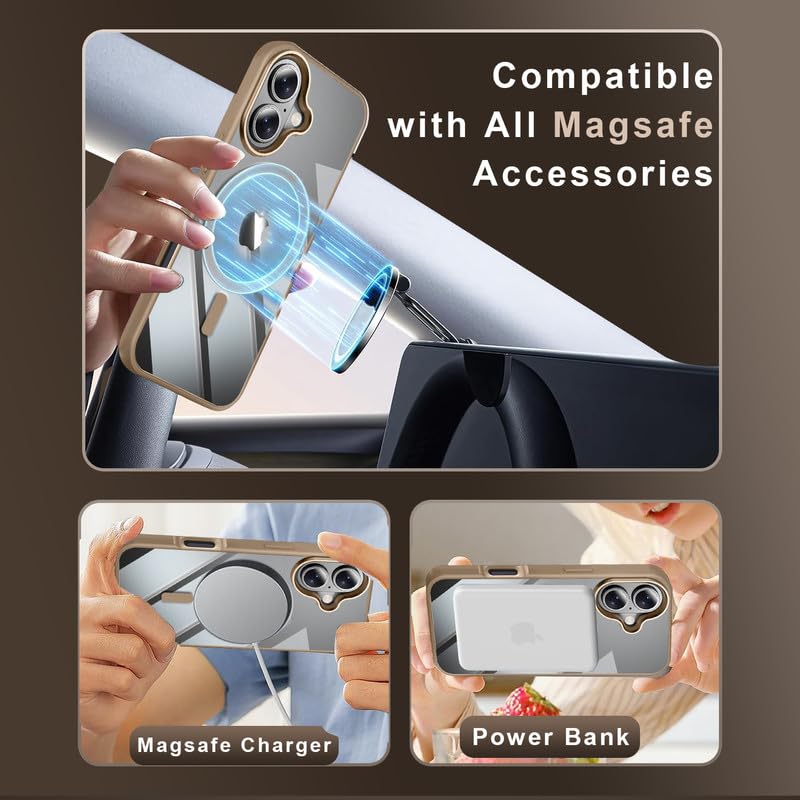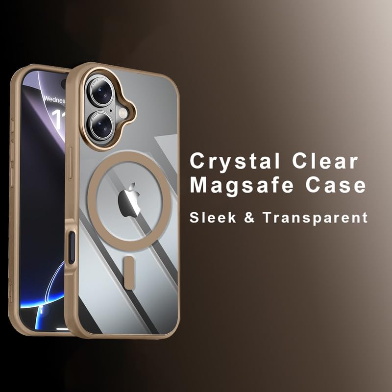 Mag-Safe Compatible Transparent Back Case for iPhone 17 | Shockproof Bumper | Raised Camera Protection | Slim Fit Design | Wireless Charging Support – Desert Titanium