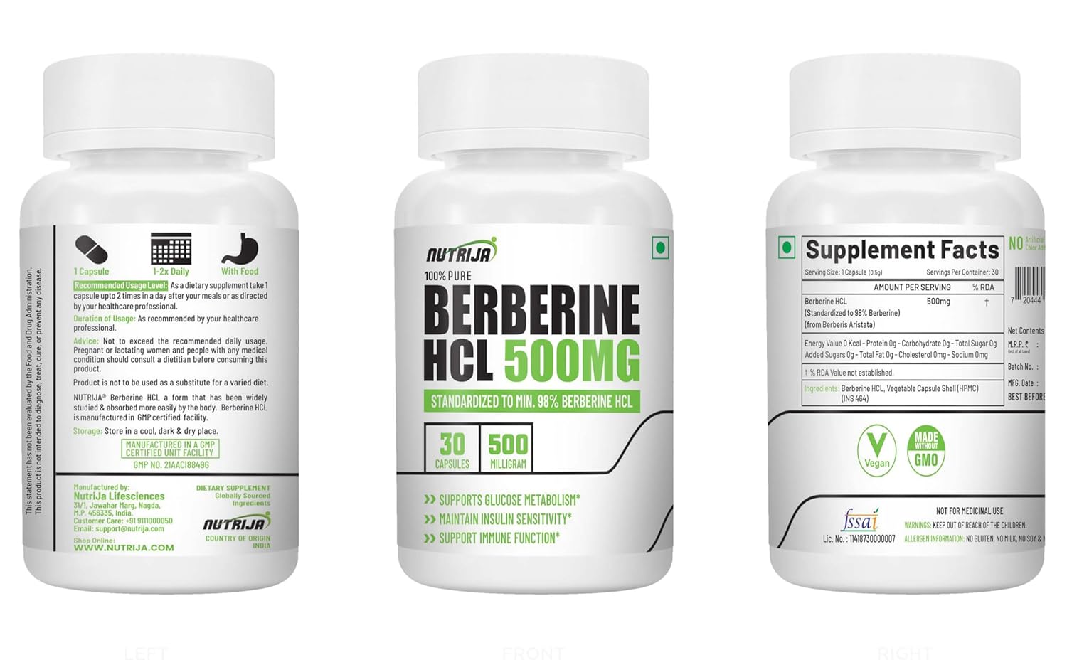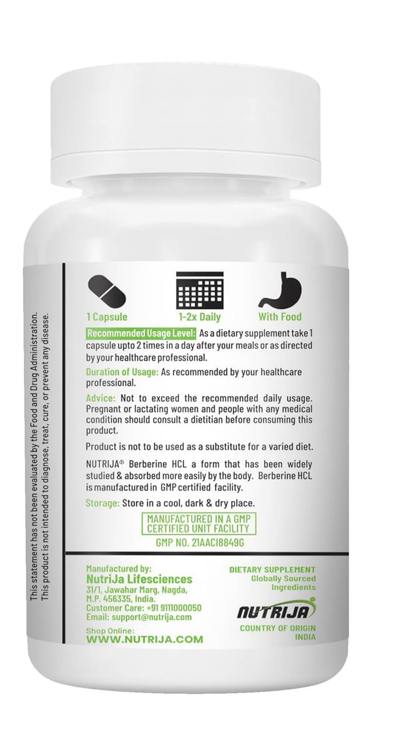 NutriJa Berberine HCL 500MG Capsules – 98% Highly Purified and Bioavailable Supplement -30 Capsules