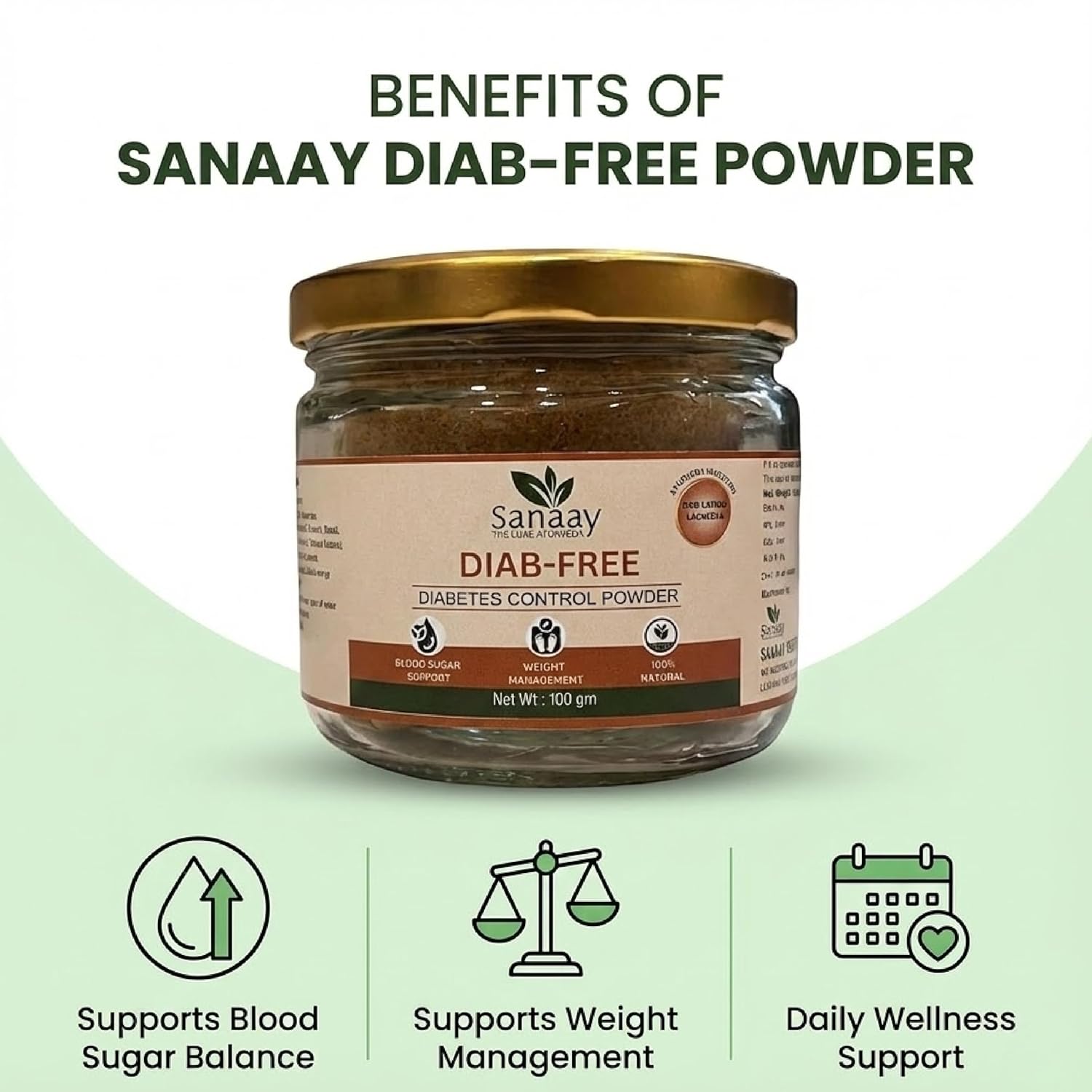 Sanaay Diab-Free Diabetes Control Powder 100 gm | Ayurvedic Herbal Blend for Blood Sugar Support & Weight Management | Natural Wellness Supplement for Daily Health Balance
