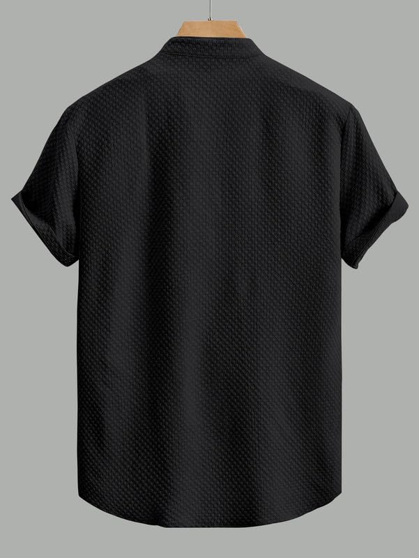 SWADESI STUFF Men’s Stylish Polycotton Regular Fit Chinese Collar Half Sleeve Shirt – Solid Color