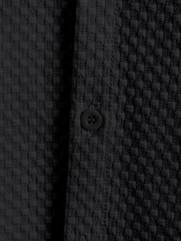 Men’s Casual Button Down Shirts Long Sleeve Cotton Bland Shirt Fashion Textured Beach Summer Shirt