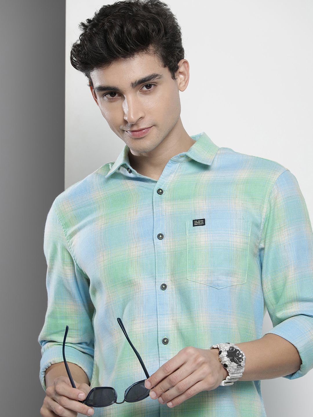 The Indian Garage Co Men Regular Fit Checkered Full Sleeves Cutaway Collar Casual Shirt