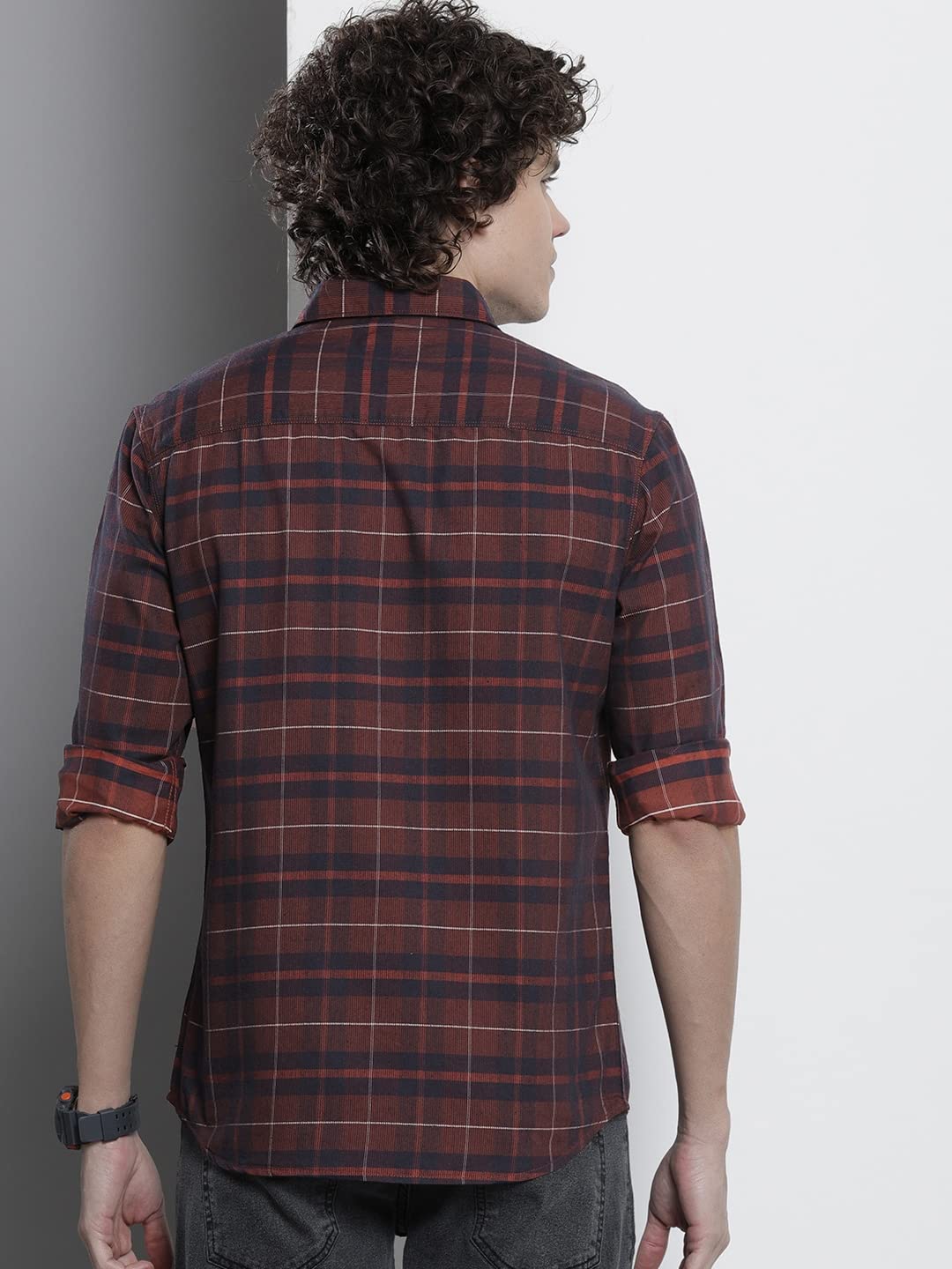 The Indian Garage Co Men Regular Fit Checkered Full Sleeves Cutaway Collar Casual Shirt
