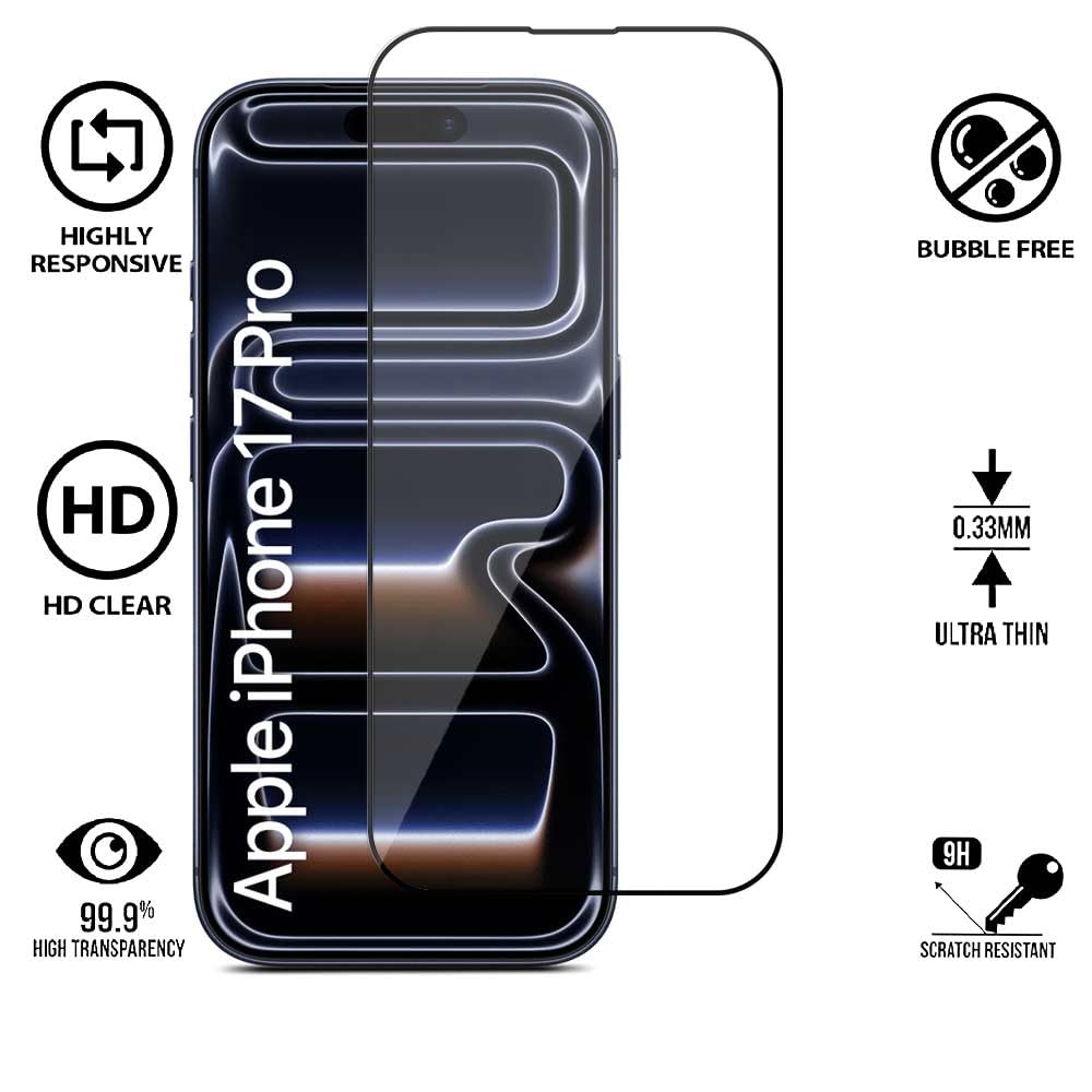 WOW IMAGINE Tempered Glass Compatible for iPhone 17 Pro | 9H Hardness Screen Protector | Edge to Edge Coverage with Easy Installation kit | (Black)