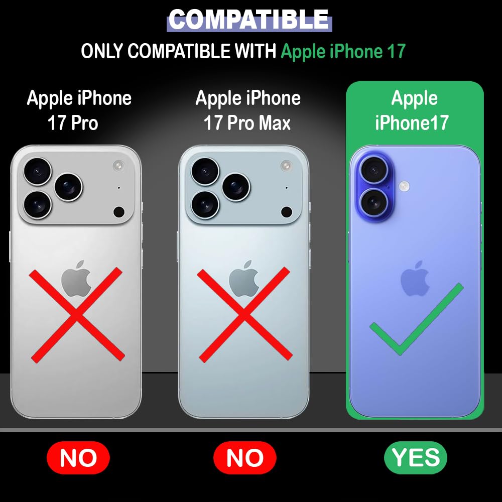 【Strong Magnets】 The Apple iPhone 17 case is compatible with MagSafe wireless charger (NOT Included). Built-in 36+2 magnets automatically aligned with wireless charger. It has stronger magnetic adsorption force without signal interference.(Note: Compatible with MagSafe accessories to be used only.