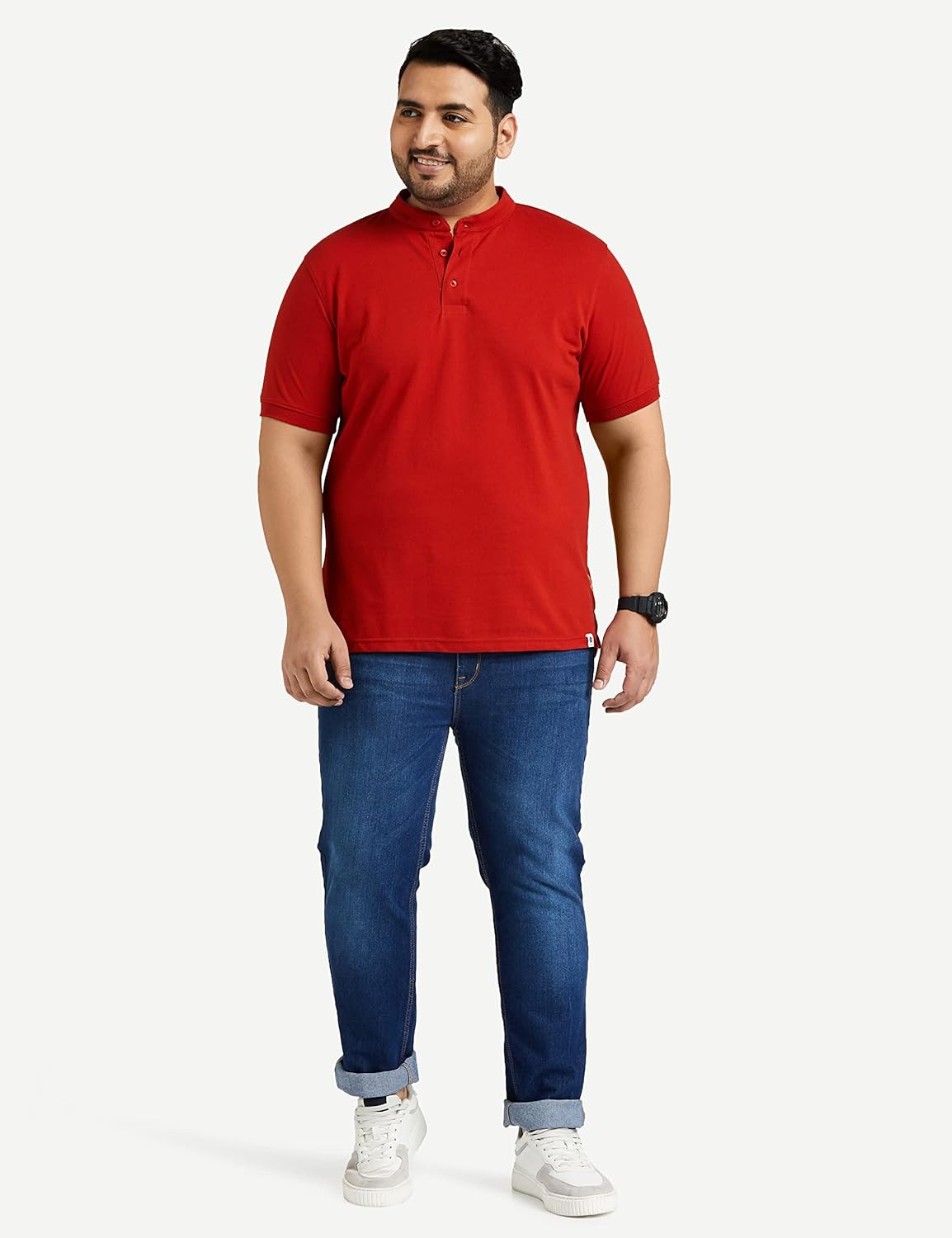 Amazon Brand – Symbol Men’s Cotton Rich Polo T Shirt | Mandarin Collar Tshirts | Half Sleeves | Plain – Regular Fit (Available in Plus Sizes)