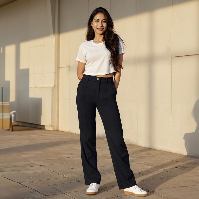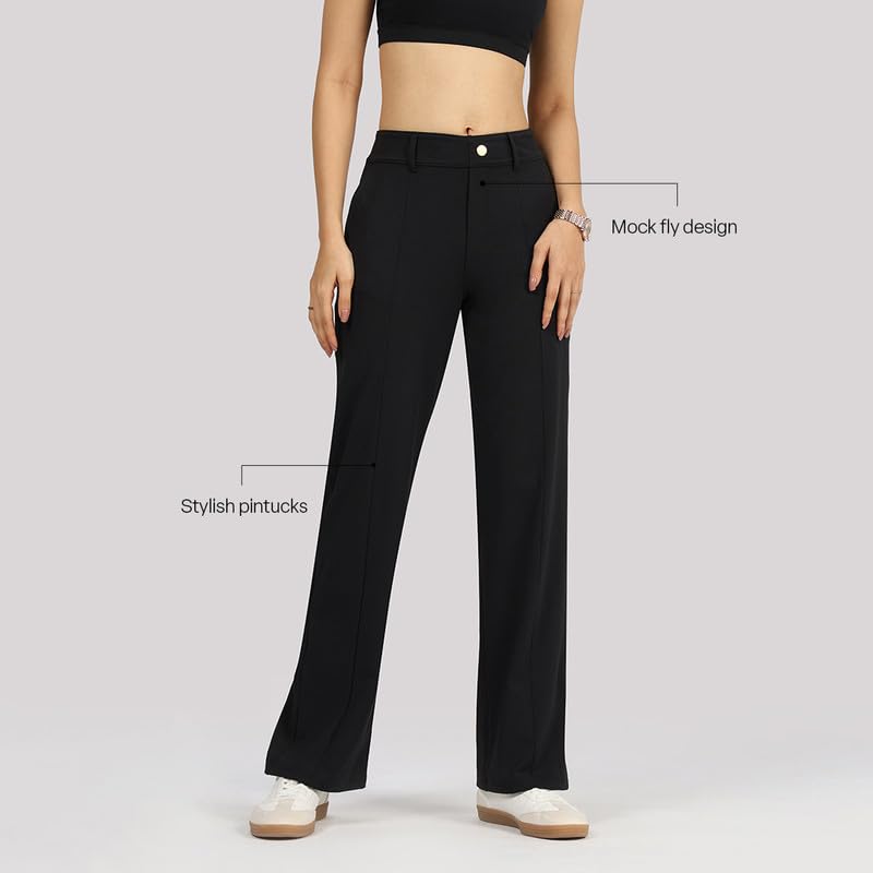 BlissClub Women’s Straight Fit Mid Rise Pants