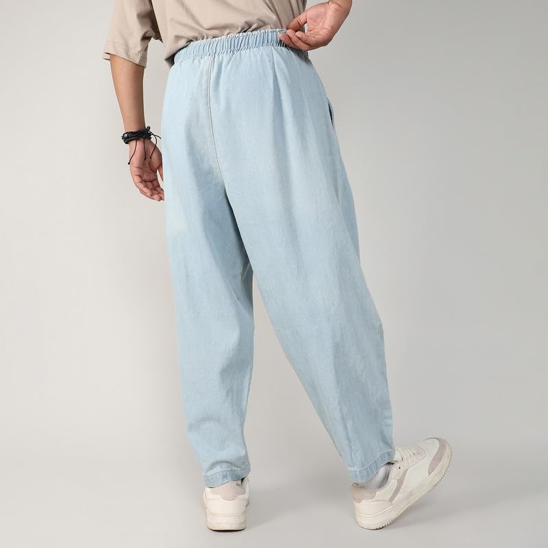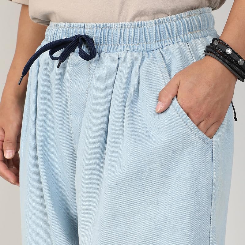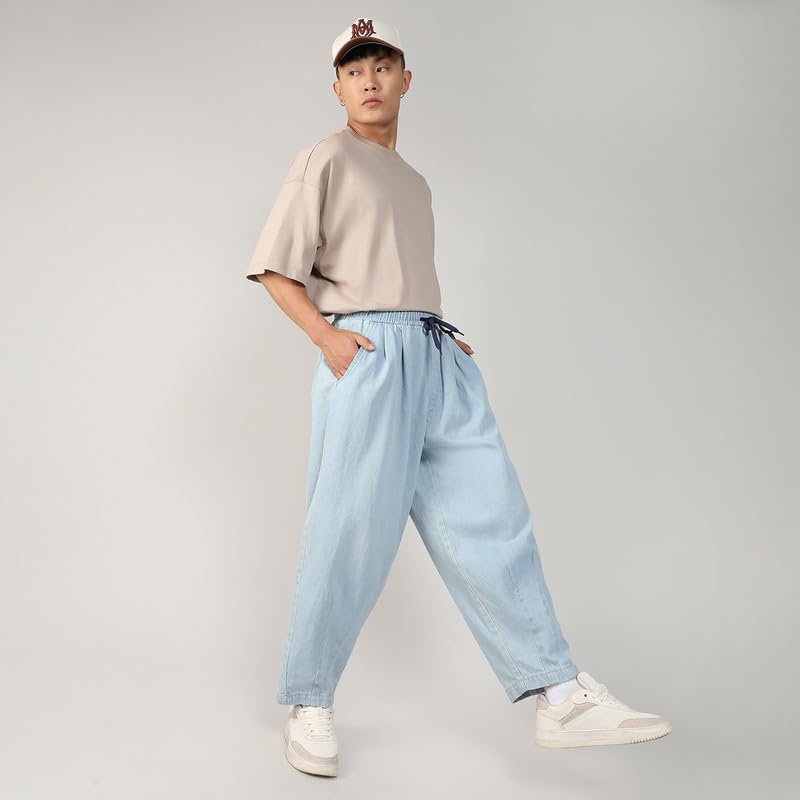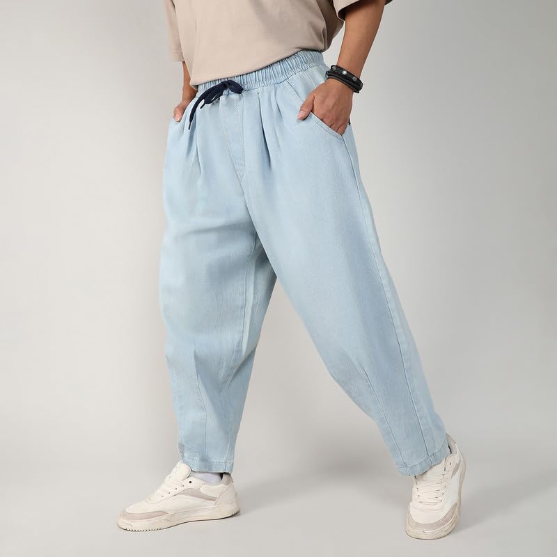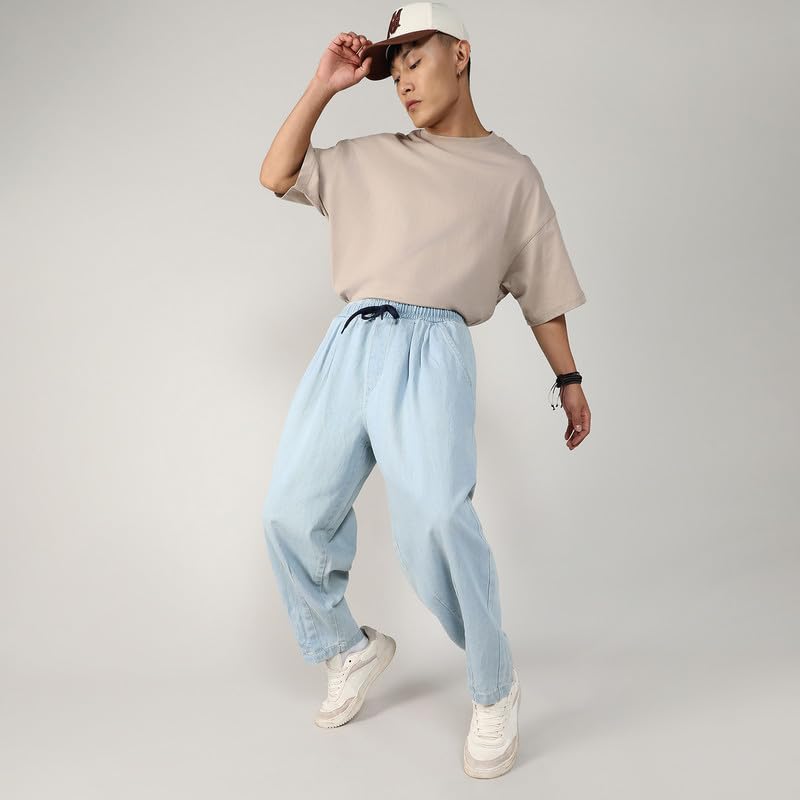 Campus Sutra Men’s Baggy Denim Jeans for Casual Wear | 2 Pockets | Mid- Rise | Drawstring Closure | Denim Jeans Crafted with Comfort Fit for Everyday Wear