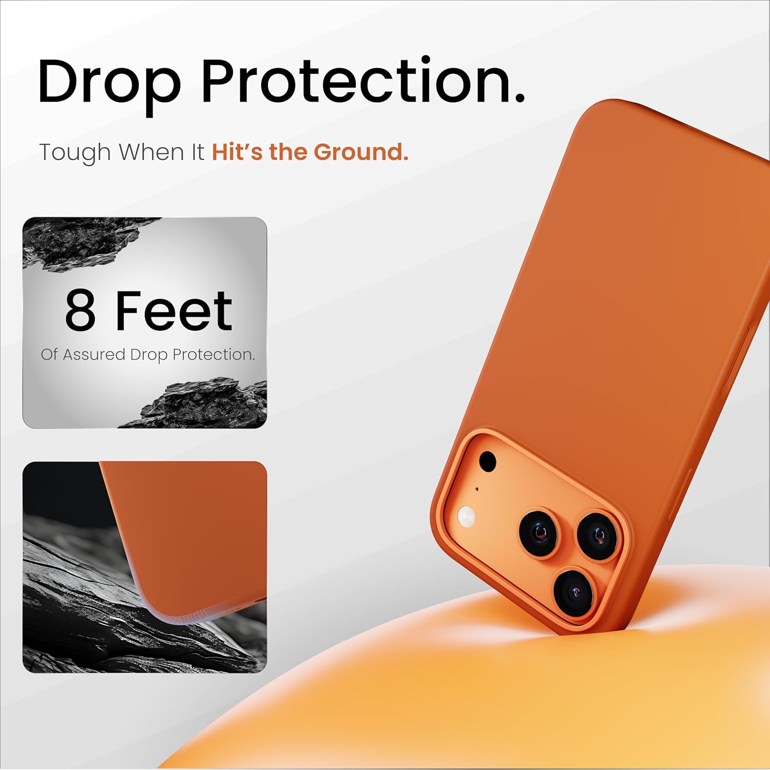 CASEGEAR Silicone Snap Fit Case Compatible with iPhone 17 Pro | 8 Feet Drop Protection | Compatible with MagSafe | 360° Protection | Slim Dust Free Phone Case | Shockproof | Warm Orange
