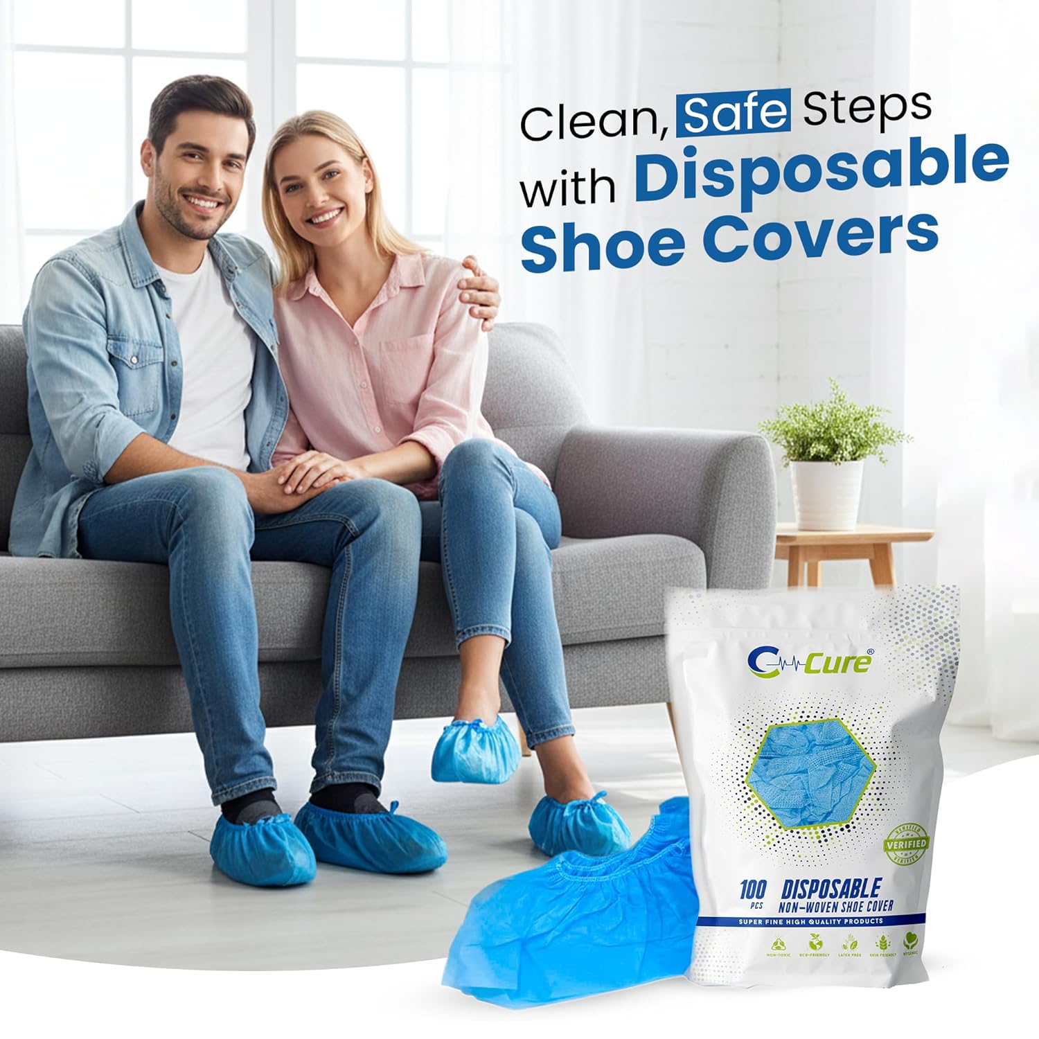 Disposable Shoe Cover Non Woven Anti Slip,Durable & Water Resistant (Not Water Proof), Hospital & Home Use Shoe Covering for Cleanliness | Free Size