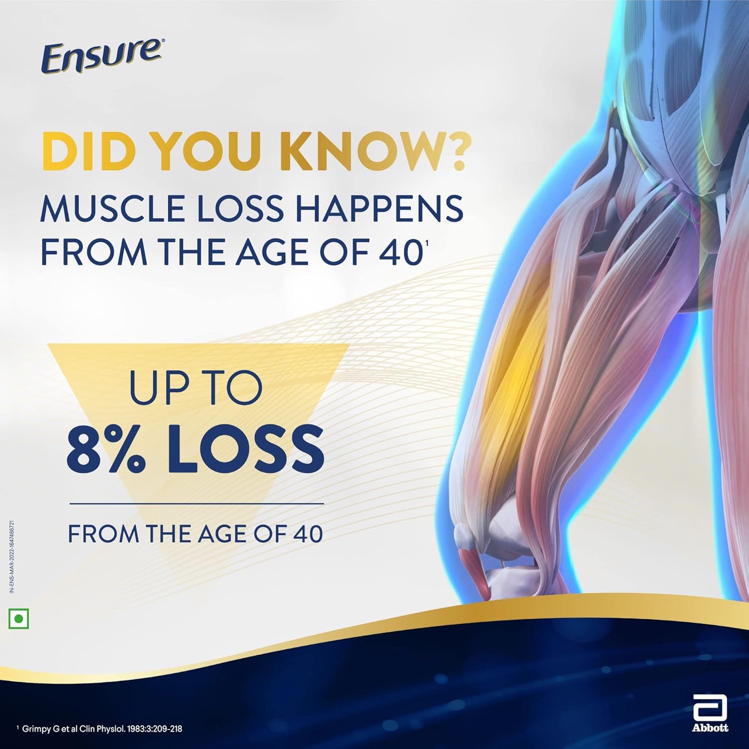 Muscle strength: Ensure helps you revive muscle strength as you age as it is a source of protein and other 32 nutrients, including HMB, to help build muscle and strength