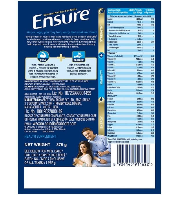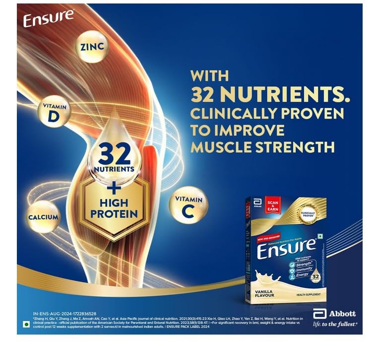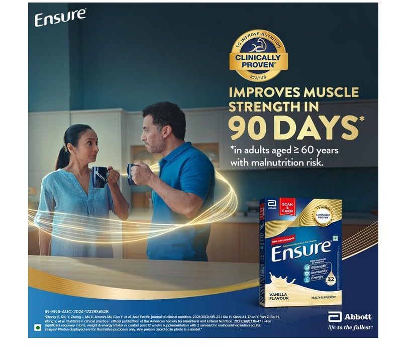 Ensure: The World’s No.1 nutritional supplement drink. Backed by over 30+ clinical trials & Abbott’s 50+ years of legacy in India. Ensure is Clinically formulated to improve Muscle Strength in 90 days.