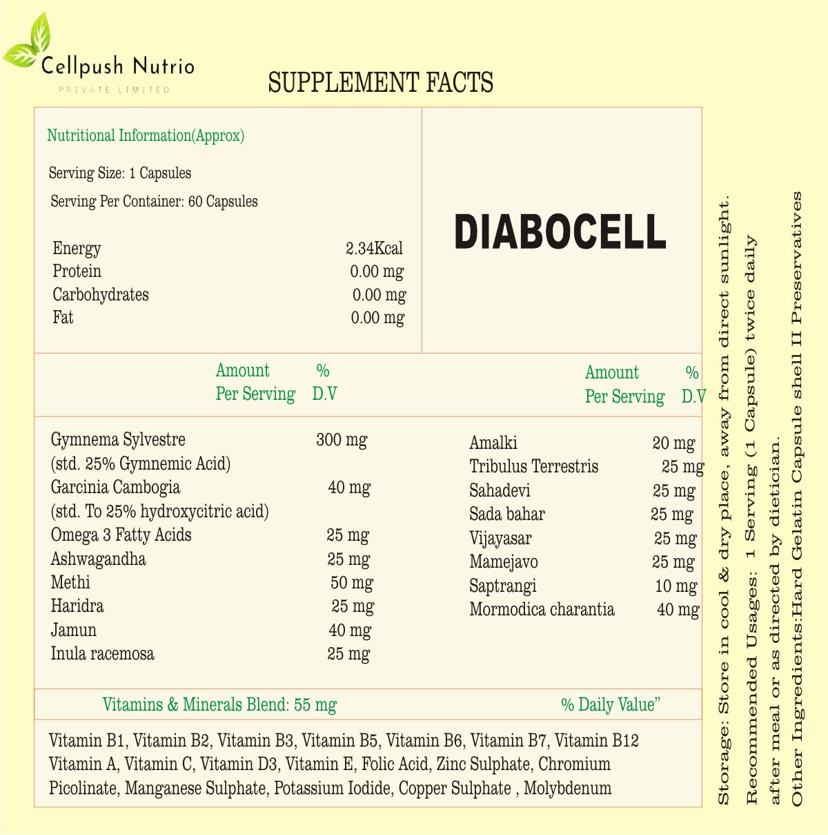 DIABOCELL Contains natural herbal extracts, such as Syzygium cumini (Jamun), Ashwagandha, Gymnema Sylvestre, Mamejao, etc. DIABOCELL’ natural ingredients also promote regulating liver and pancreas functioning, improving insulin sensitivity and activity, regulating immunity, and relieving stress and anxiety. pre-sugar type 1 & Type 2 Sugar stages with nutraceuticals are more effective than with Ayurveda. DIABOCELL rejuvenates the pancreas to produce essential amounts of insulin, which triggers the body cells to initiate glucose absorption. Our Blood Sugar Control supplement is Packed with the goodness of Ayurvedic Herbs Extract and Can Be used In type 1 & type 2 blood sugar stages. No chemical ingredients are used in the product and all ingredients are natural. It does not just focus on forcefully reducing Blood Sugar Levels, but it stimulates our body organs by strengthening their operational capacity and reduces blood sugar levels naturally.