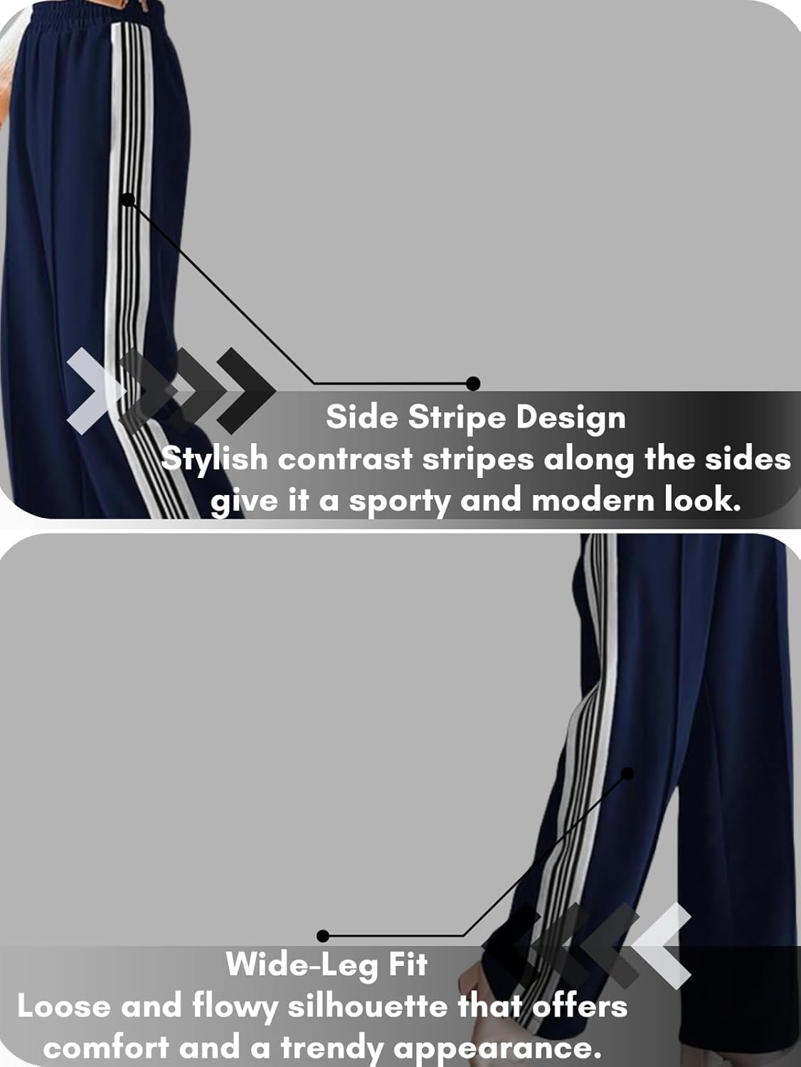 Preneum Women’s Striped Wide-Leg Korean-Inspired Comfortable & Stylish Casual and Formal Trouser Pant