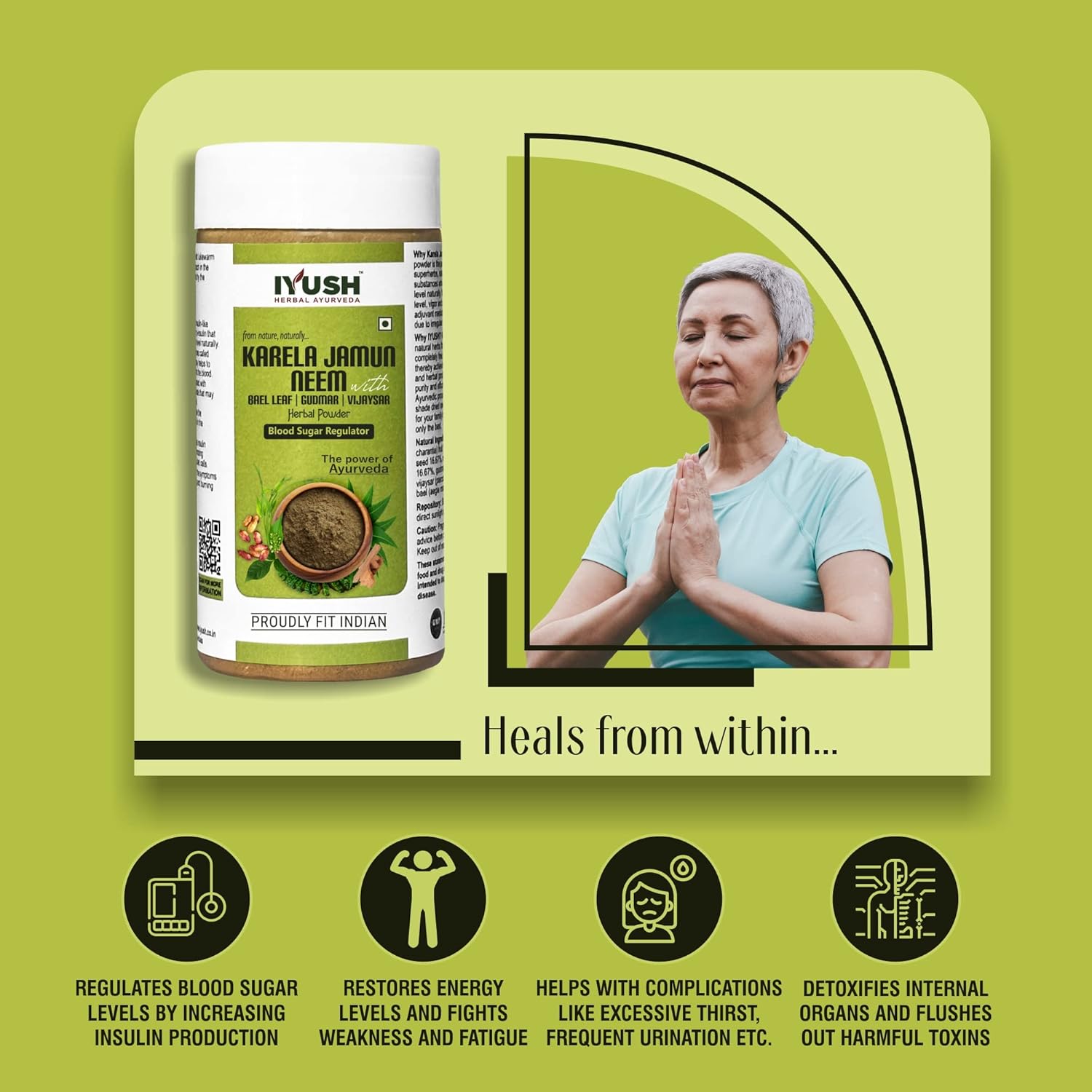 IYUSH Herbal Ayurveda Karela Jamun Neem Powder with Gudmar, Vijaysar, and Bael Leaf – 250gm