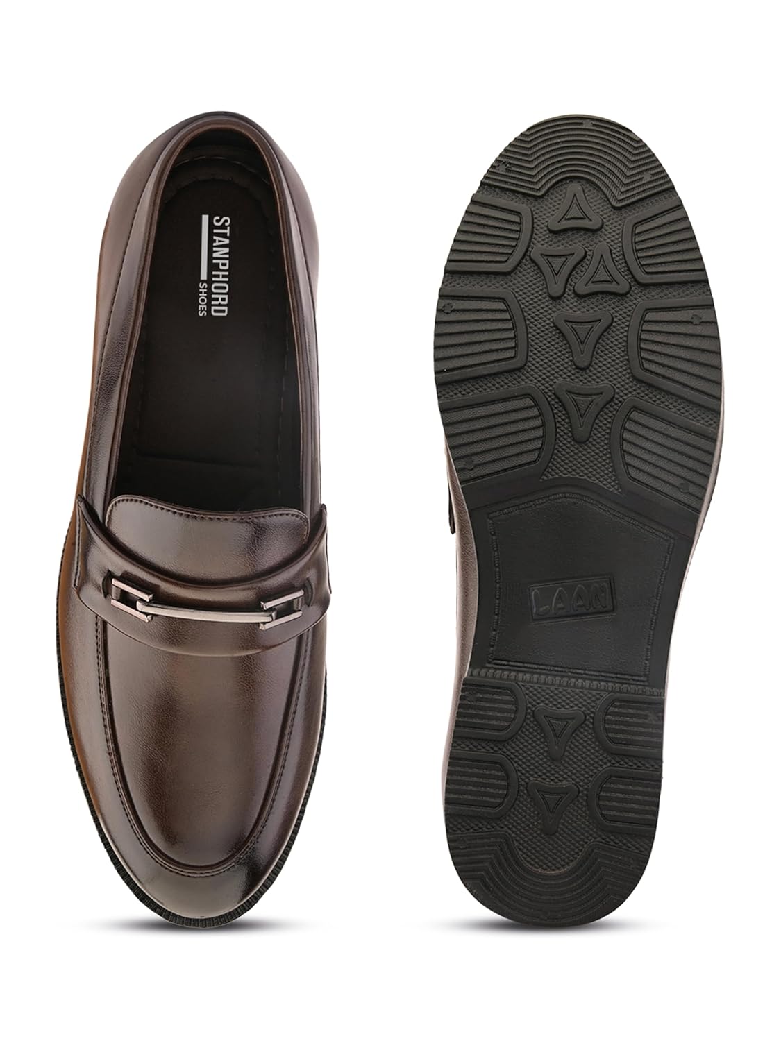 Step up your formal footwear game with Stanphord Men’s Black Formal Loafers, designed for style, comfort, and durability. Made from premium solid PU leatherette, these men’s slip-on shoes combine elegance with practicality, making them perfect for office wear, business meetings, weddings, parties, and casual formal occasions. The classic black loafers for men feature a smooth slip-on design for easy wearing and removal, while the cushioned insole ensures all-day comfort. The durable anti-slip sole provides excellent grip on various surfaces, making these men’s formal shoes reliable for daily office use or long walks. Crafted with a lightweight and breathable design, these PU leather moccasins for men offer superior comfort, support, and a perfect fit. Their stylish black finish complements formal trousers, business suits, chinos, and even casual outfits, making them versatile for multiple occasions. Whether you need comfortable office shoes, stylish party wear loafers, business formal footwear, or durable men’s dress shoes, Stanphord Black Formal Loafers are your go-to choice for elegance, comfort, and lasting performance.