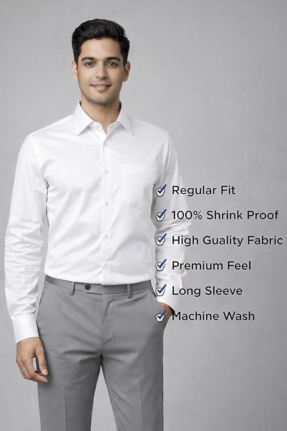 Men’s Solid Formal Shirt | Regular Fit Full Sleeve, Cutaway Collar Breathable PC Cotton Fabric | Shrink Proof | Office Wear | Machine Wash