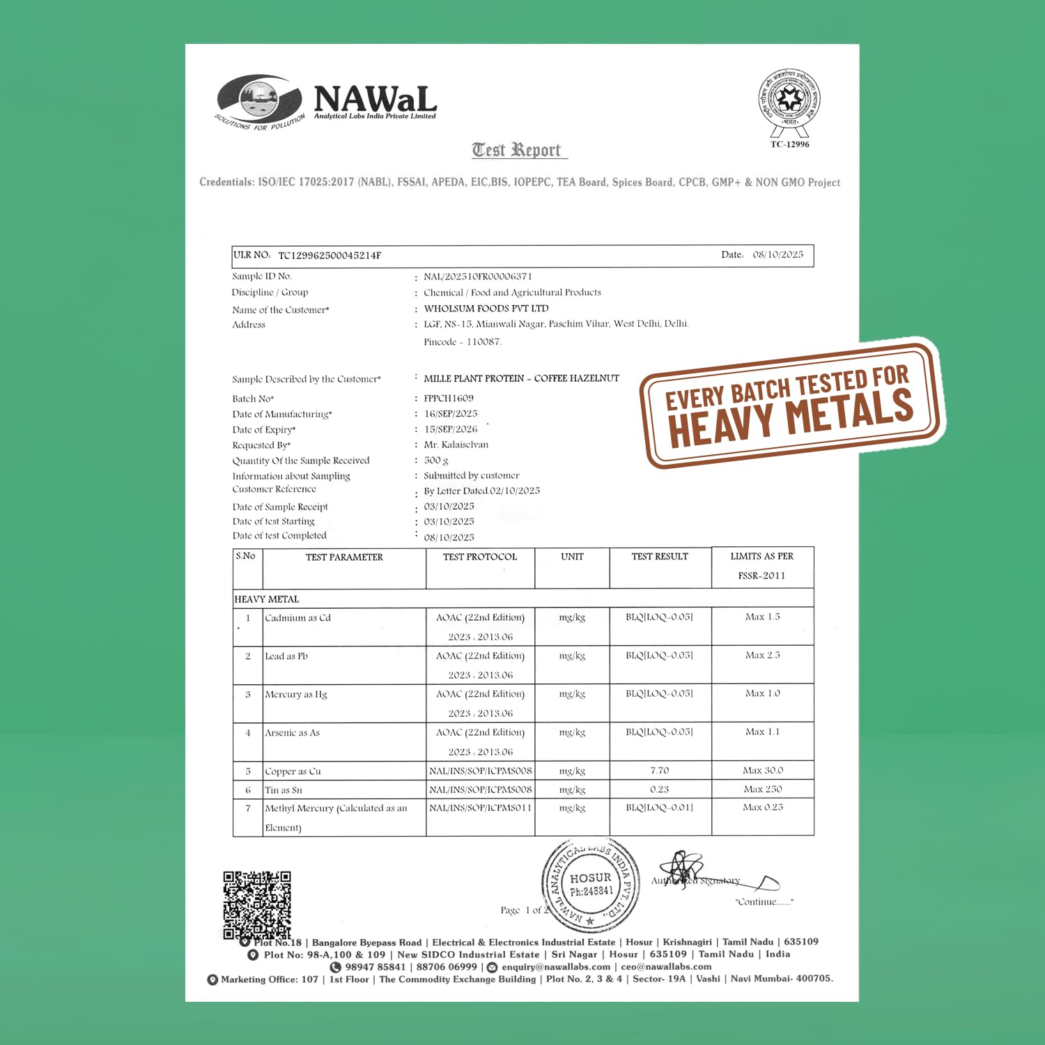 Manufacturer : Functional & Innovative Foods Pvt. Ltd., 1/374-A, Andipalayam Village, Andipalayam Post