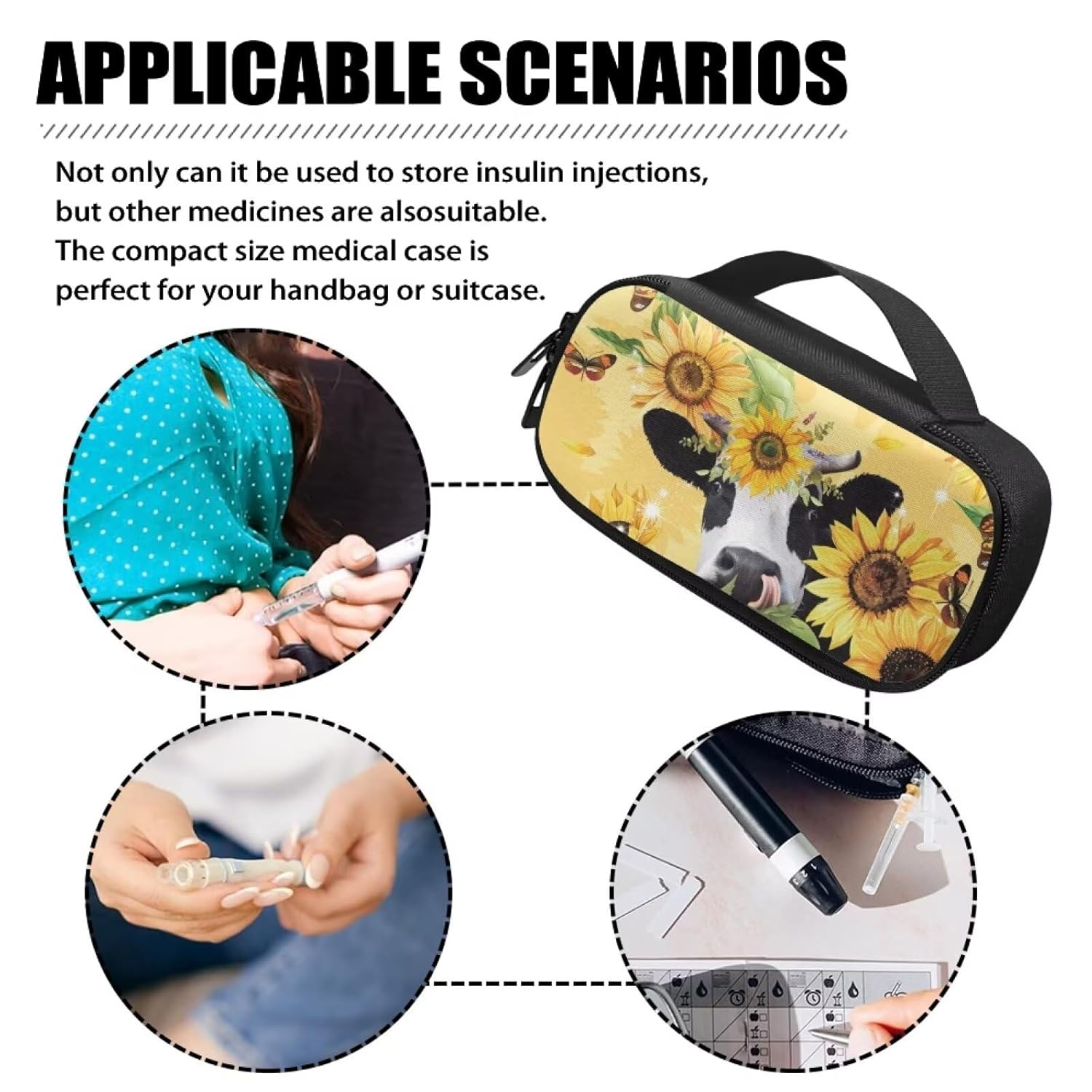 Rnyleeg Sunflower Cow Print Insulin Cooler Travel Case Diabetic Medication Cooler Bag Medical Travel Case for Insulin Pens and Diabetic Supplies Handy Medication Insulated, Yellow