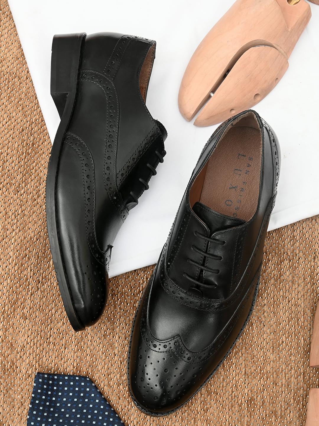 San Frissco Men’s Lace-up Brogue Formal Shoes with Cushioned Insole | Classic Genuine Leather Comfortable for Formal Occasions, Office Wear, and Business Meetings with TPR Sole