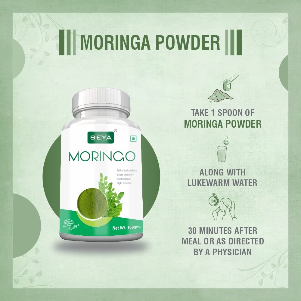 SEYA Natural Moringa Powder, 100gm (Pack of 1) / Drumstick (Oliefera) Leaf Powder, Antioxidants, Boost Immunity, Shigru Powder, No Added Sugar, Healthy Superfood, Rich in Vitamin and Mineral