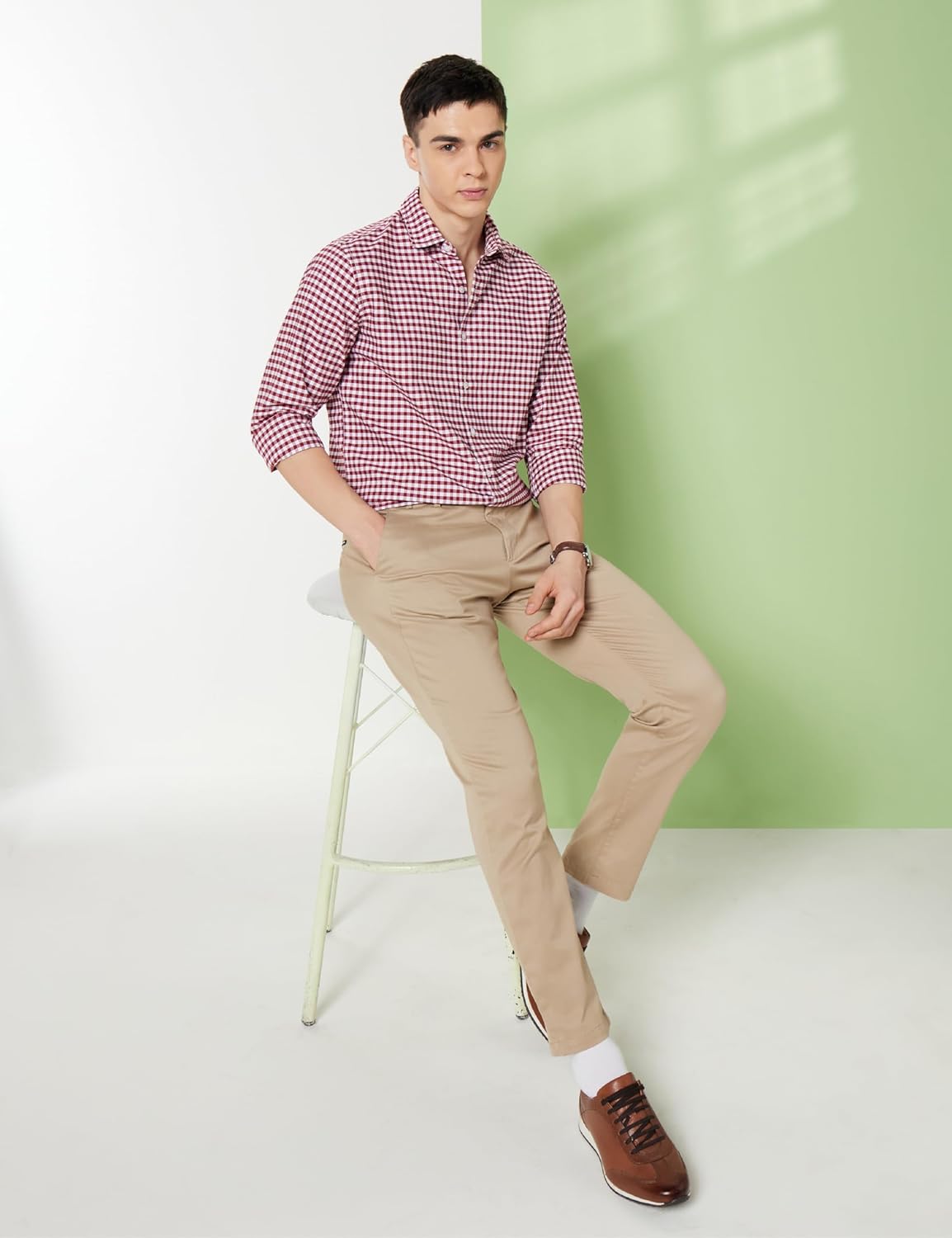 Arrow Men Slim fit Cotton Checked Long Sleeves Semi-Cutaway Collar Shirt
