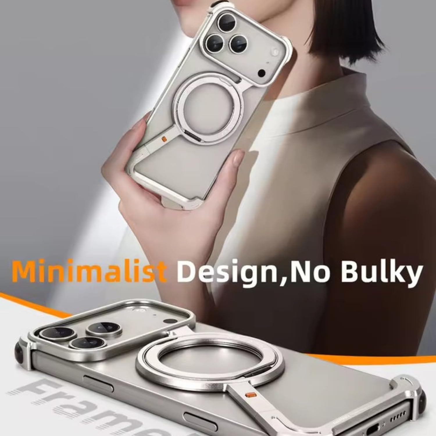 FOUR-CORNER DROPPROOF & CAMERA SCREEN PROTECTION – Rimless case with kickstand is equipped with cushioned airbags at the corners to provide excellent impact protection. In addition, the metal edges of the case for iPhone 17 Pro are 1mm higher than the screen and 4mm higher than the camera, which effectively protects screen and camera lens from everyday wear scratches