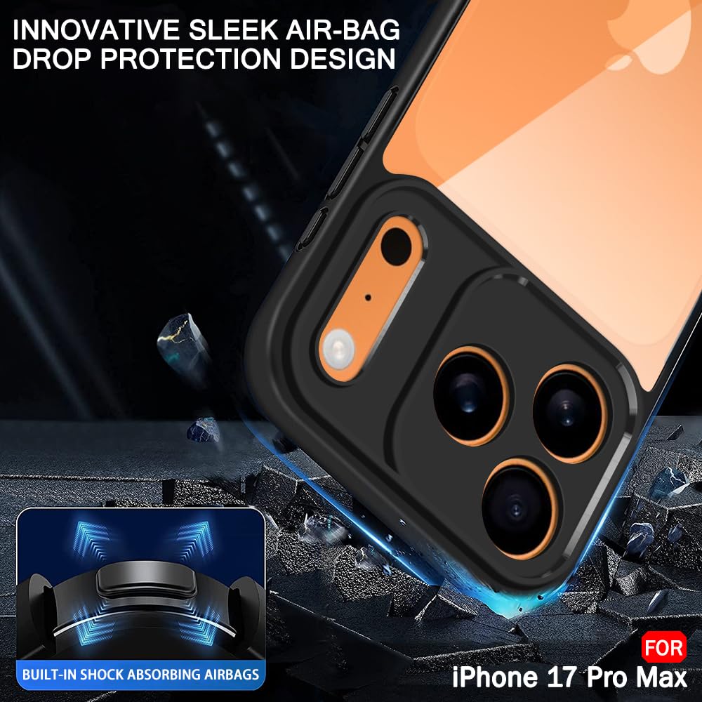 TheGiftKart Ultra-Hybrid Shockproof Sleek Armor Back Cover Case for iPhone 17 Pro Max | 360° Protection | Crystal Clear Hard Back Cover Case (PC & TPU, Transparent Clear Back, Black Sides)
