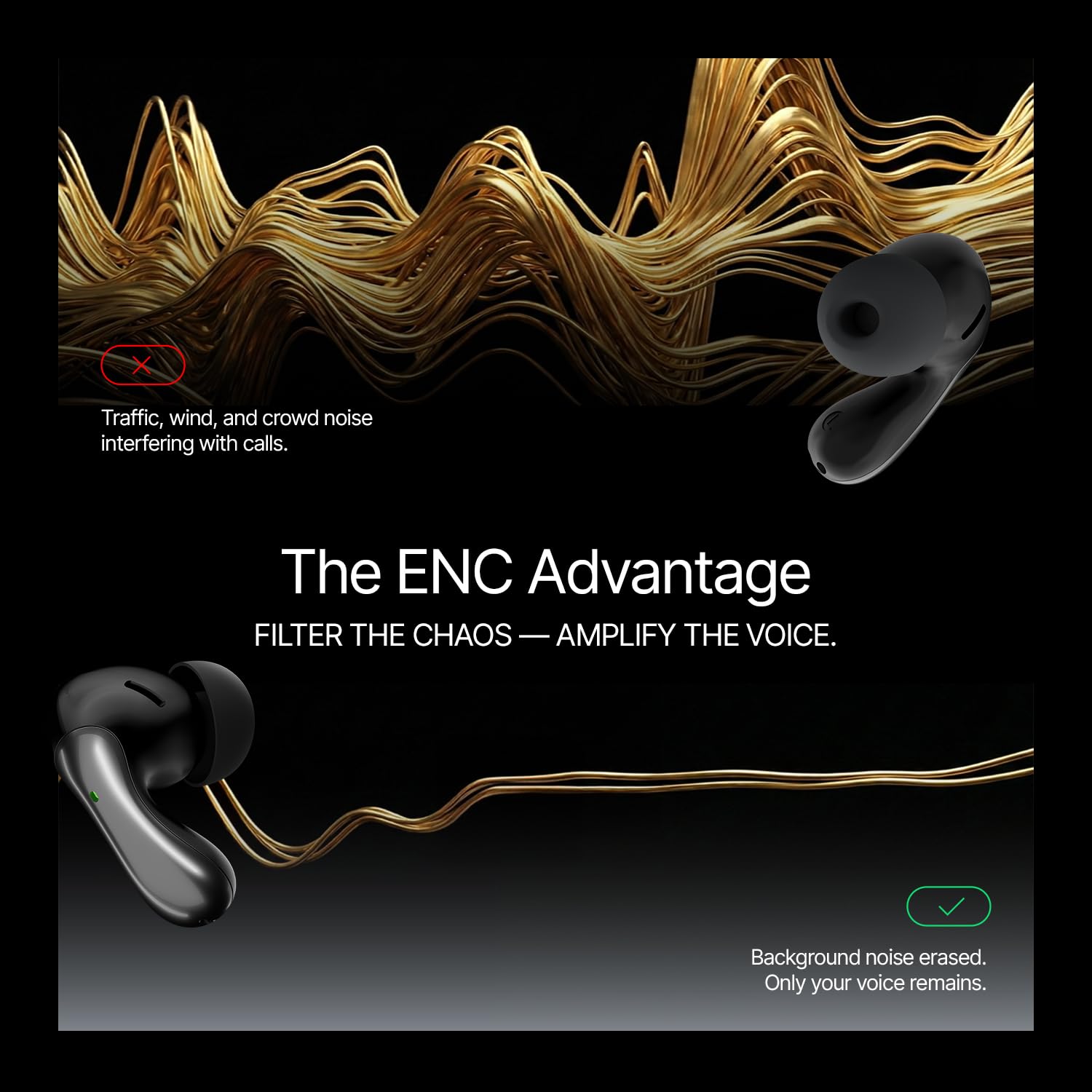 Crystal-Clear Calls with Quad Mic ENC – Enjoy superior calling clarity with quad microphones and Environmental Noise Cancellation (ENC). These TWS wireless earbuds accurately capture your voice while minimizing background noise—ideal for calls, meetings, and voice assistants.