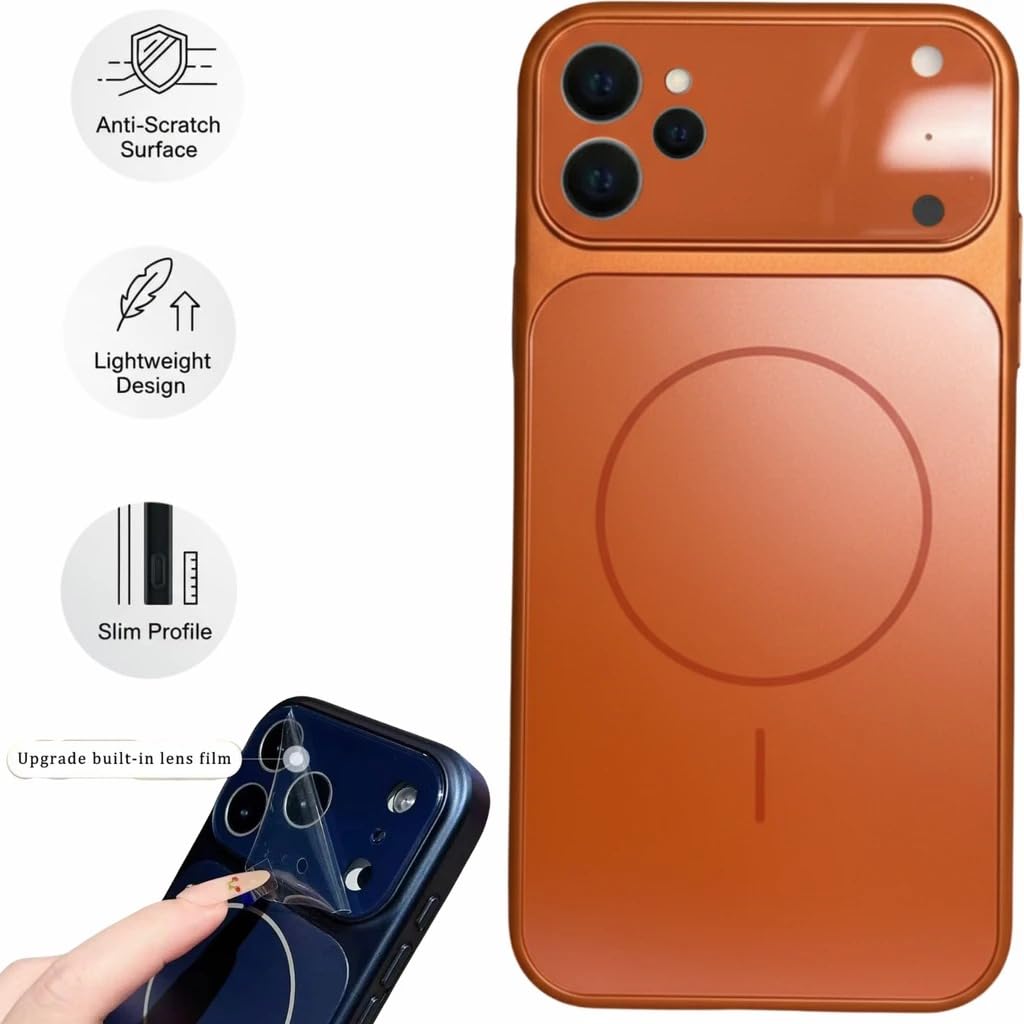 for iPhone 12 |Convert to 17 pro /17 Pro Max Style Premium Back Glass Converter Cover Magnetic Case for iPhone 12 |Convert to 17 pro /17 Pro Max (Orange)