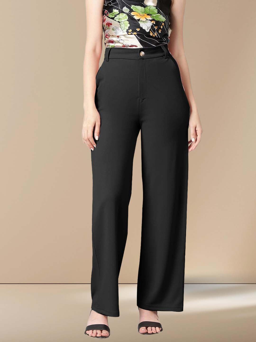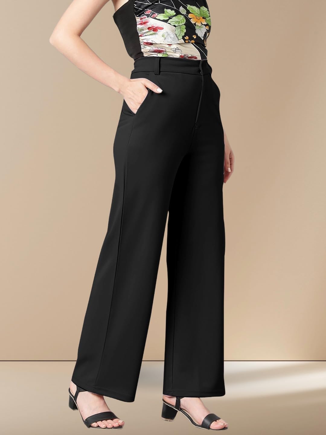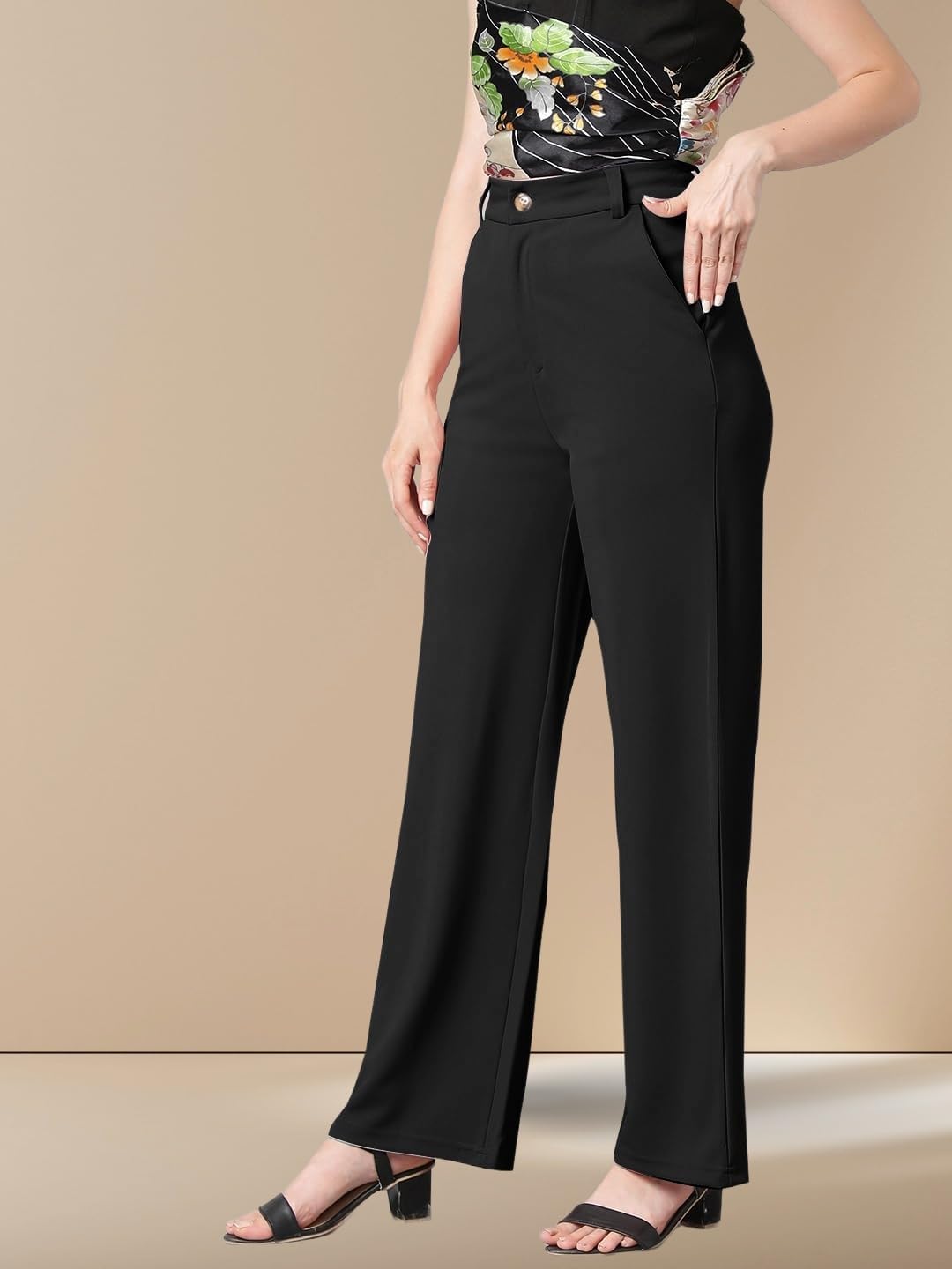 GRECIILOOKS Trousers for Woman | Womens High Rise High Waist Flared Korean Style | Formal Pant for Women Office Wear| Track Pants for Womans Elegant for College & Events (Available in Plus Size)