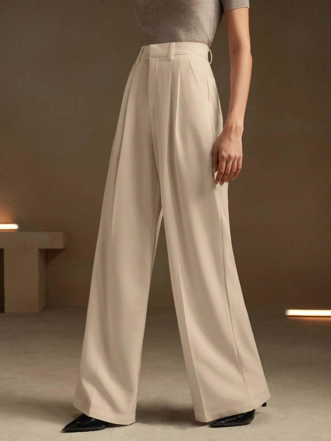 KOTTY Women’s Beige High Waist Wide Leg Straight Trouser for Formal and Office Wear