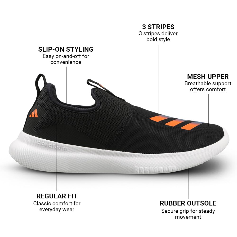Slip-on construction for easy, on-the-go wear. • Stretchable and sustaiNot applicableble mesh upper • Half and half upper designed with better shaping around the collar to help support your foot. • Gradient printing on 3 stripes look premium • ORTHOLITE SOCKS :- Highly resilience socks with extra cushioning effect and anti- bacterial comfort