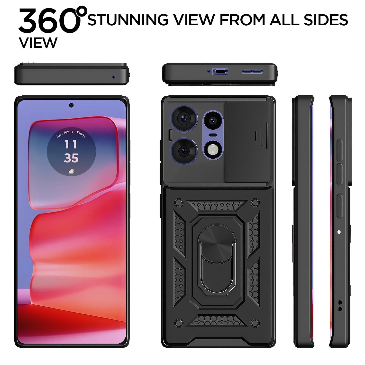AIBEX® Back Cover for Motorola Edge 50 Pro 5G | D10 Tough Armor Case | Sliding Camera Shield | 360° Protection | Kickstand Ring Holder | Military-Grade Shockproof Bumper Case