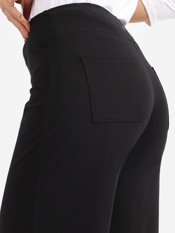 BlissClub Werk-It Flare Pants for Women Office Wear, Formal Cotton Trousers for Women with High Waist and 4 Pockets