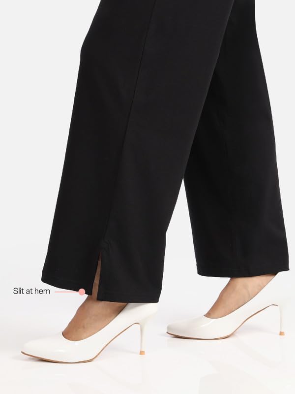 BlissClub AM:PM Cotton Wide Leg Pants – Lite, Cotton Pants, Wide Waistband, Slit at Hem, Side Pockets, Regular (for Women Upto 5’4 ft)