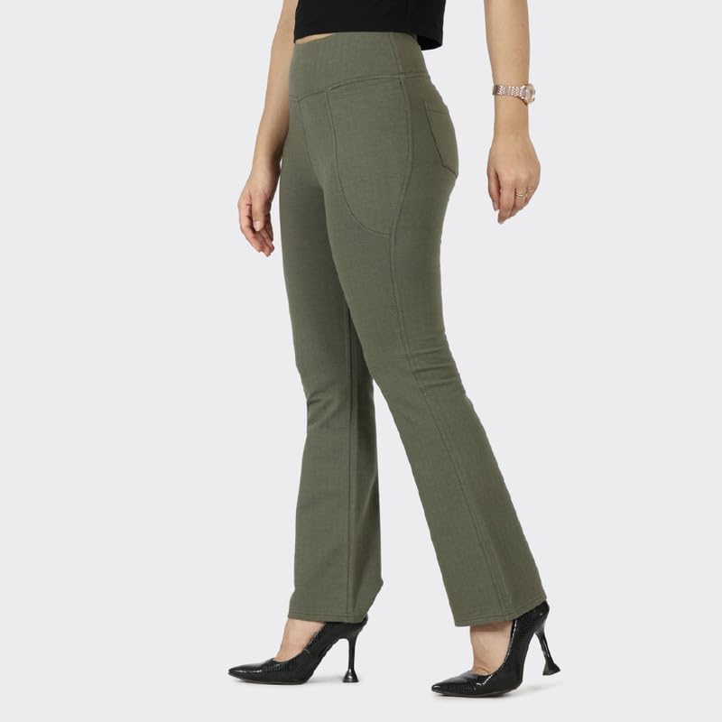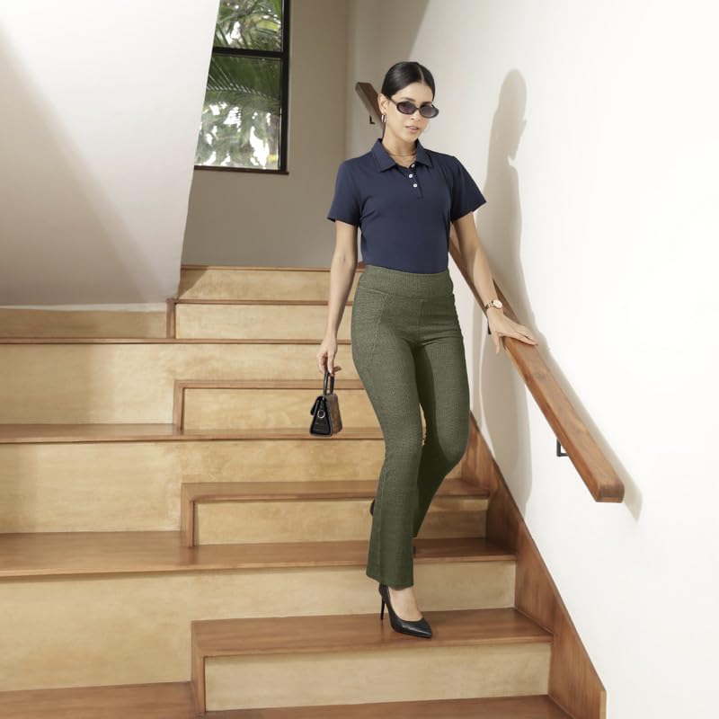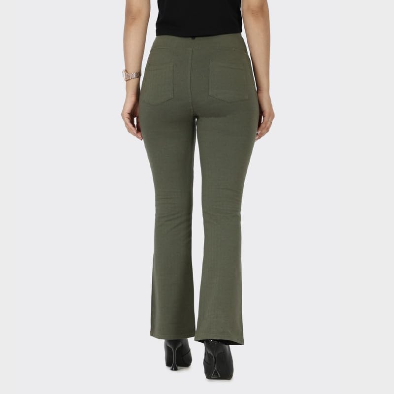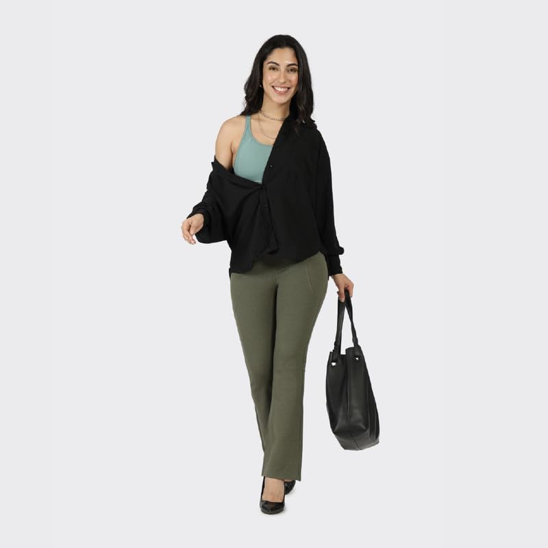 BlissClub Werk-It Flare Pants for Women Office Wear, Formal Cotton Trousers for Women with High Waist and 4 Pockets