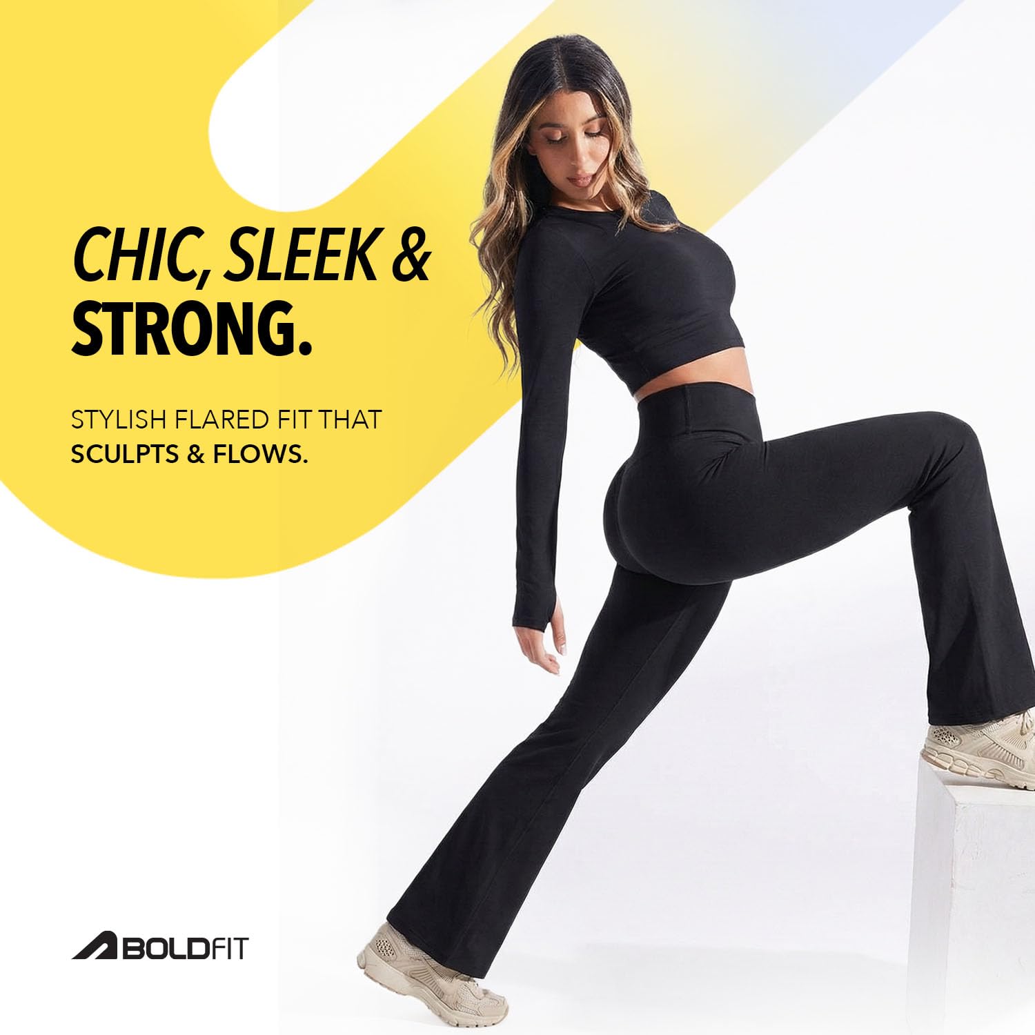 Boldfit Limitless Nyloflex Flare Pants for Woman Leggings for Women Full Length Stretchable Gym Pants for Women Workout Flare Pant for Yoga, Pilates, Gym for Daily Use Flared Palazzo for Woman