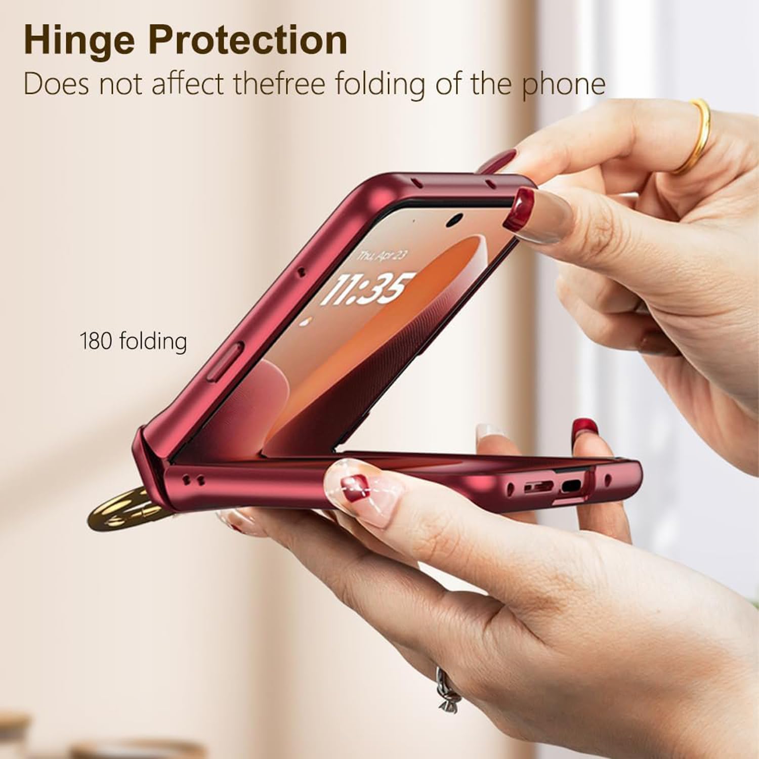 ✅【 Hinge Protection + Inbuilt Ring】Inbuilt 360° All-inclusive hinge Cover. It Does not affect folding , and protects hinges from falls and damage . Attached Ring makes it easier to hold phone with one hand and prevents accidentally slipping of phone