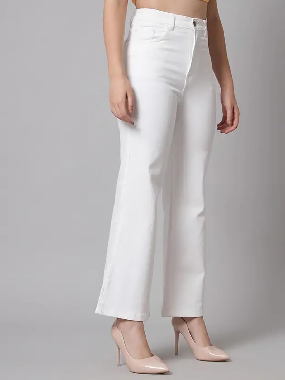 KOTTY Women’s Solid|Fit and Flared Fitting|Ankle Leg Style|High Rise|Stechable|Casual Jeans