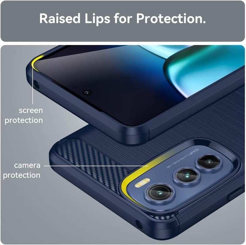 OneLike Shockproof Zebra Carbon Fiber Soft Slim Flexible Protective Case Back Cover for Motorola Edge 30 5G – Blue