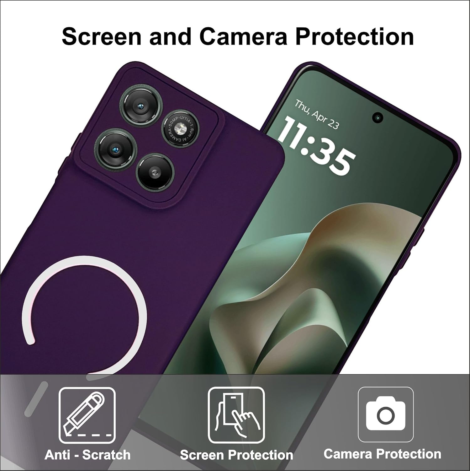 Silicone Back Cover for Motorola G67 power / G57 Power | Soft Micro-Fibre Lining Inside | Magsafe Print On Back Side Camera Protection Bump | Shockproof Case G67power (Magsafe Print Small Purple)