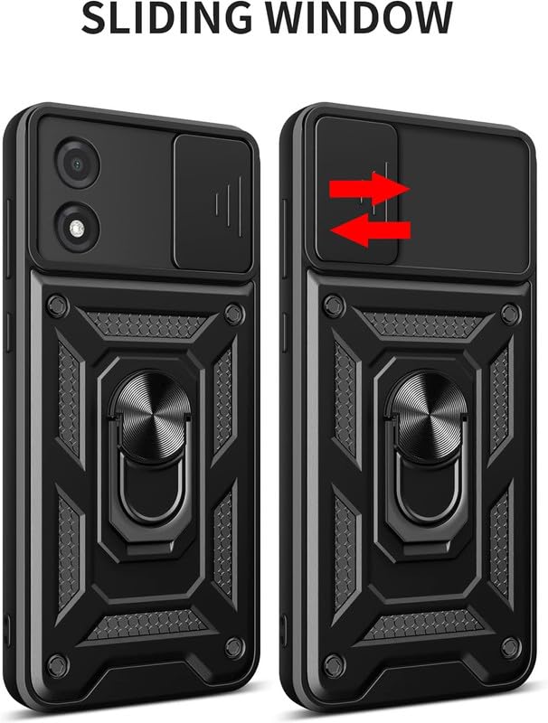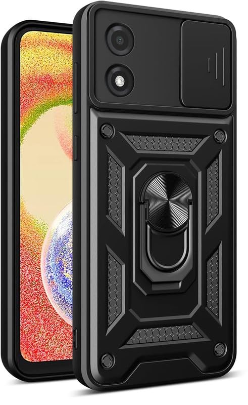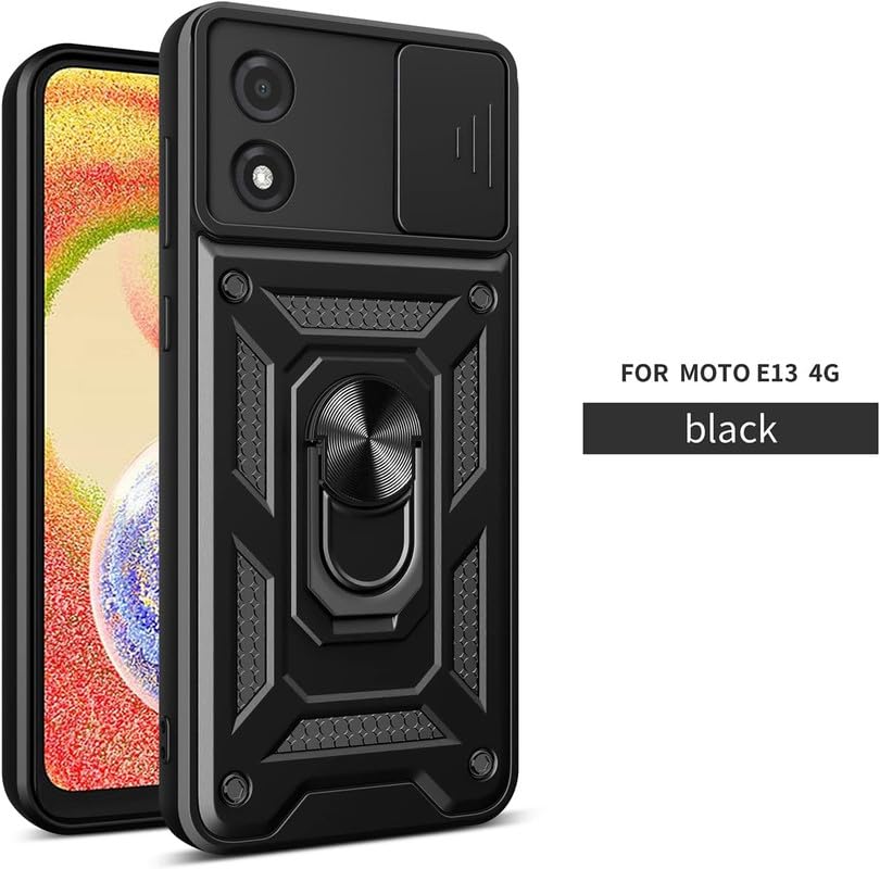 SkyTree Shock Proof with Slide Camera Cover for Motorola Moto E13, Kickstand in-Built | 360 Degree Protection Back Case Cover for Motorola Moto E13 6.5″ – Black