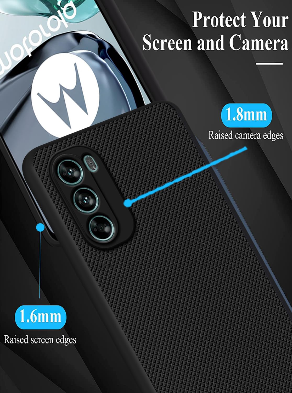 DISPLAY AND CAMERA PROTECTION | The raised camera edge and the reinforced corners protect your phone camera and display against scratches when it rests face down on surfaces.