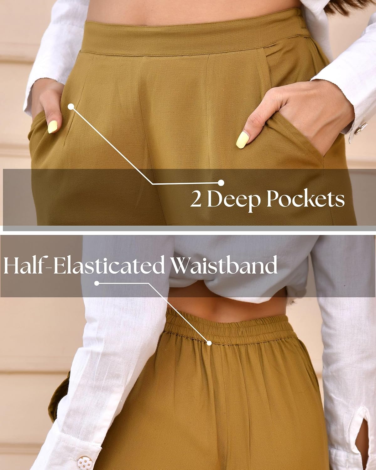 SAADAA Palazzo Pants for Women Half-Elasticated Waistband | Palazzo for Women in Soft Viscose Fabric | Regular Fit with Mid Rise Waist & Deep Pockets | Versatile for Formal & Casual Wear