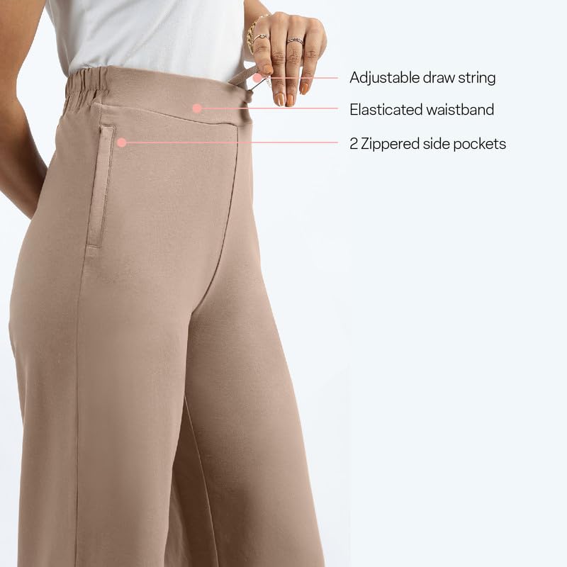 BlissClub Women AM PM Cotton Wide Leg Pants | Wide Waistband | High Rise | Drawstring | 2 Pockets