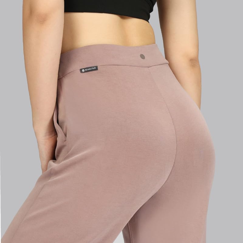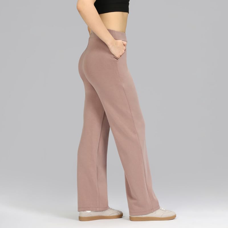 BlissClub Womens BareButter Straight Pants, High Rise, Straight fit,Pockets, Comfortable Waistband,Regular Variant Below 5’4