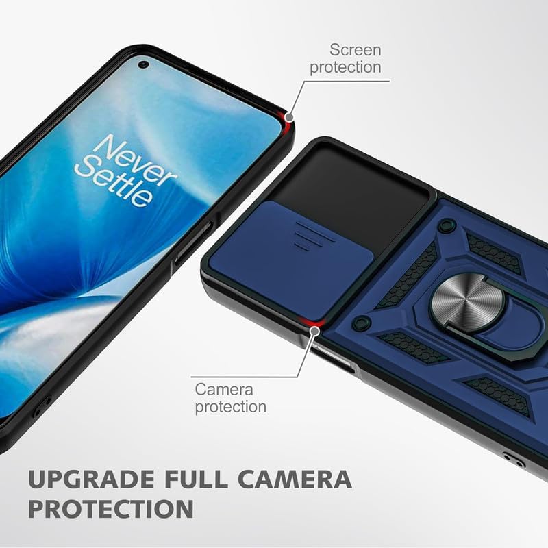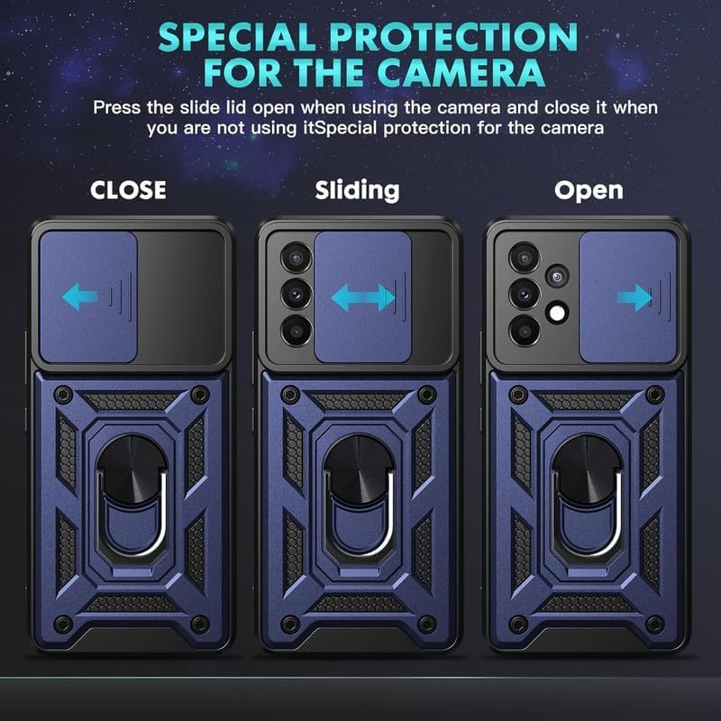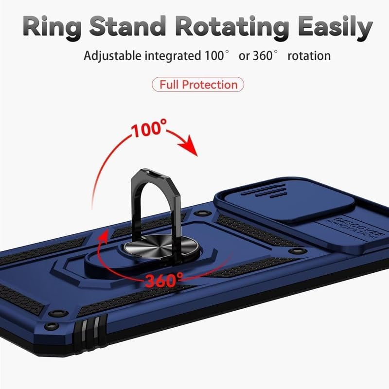 Ring Case Sliding Shutter Camera Bumper Defender Hybrid Polycarbonate Ring Case Back Cover for Motorola Moto G96 5G – Blue